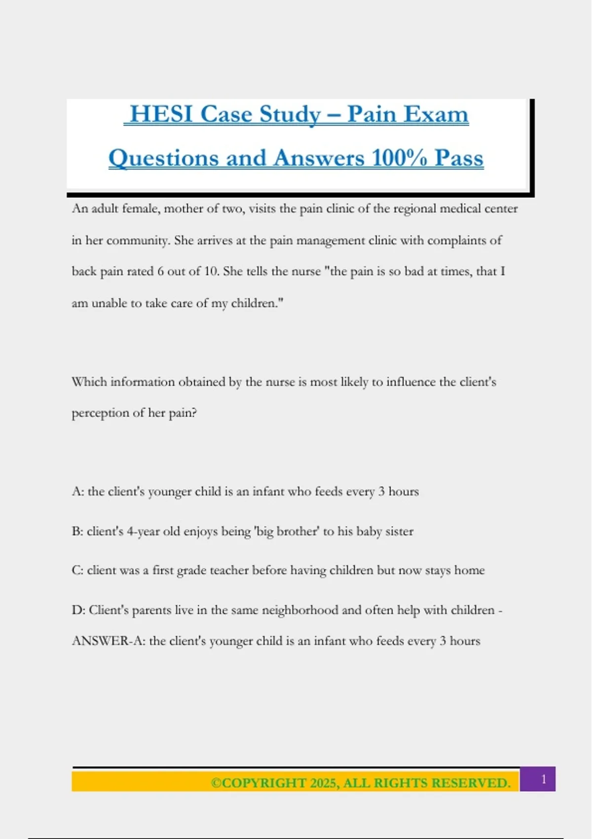 HESI Case Study – Pain Exam Questions and Answers 100% Pass