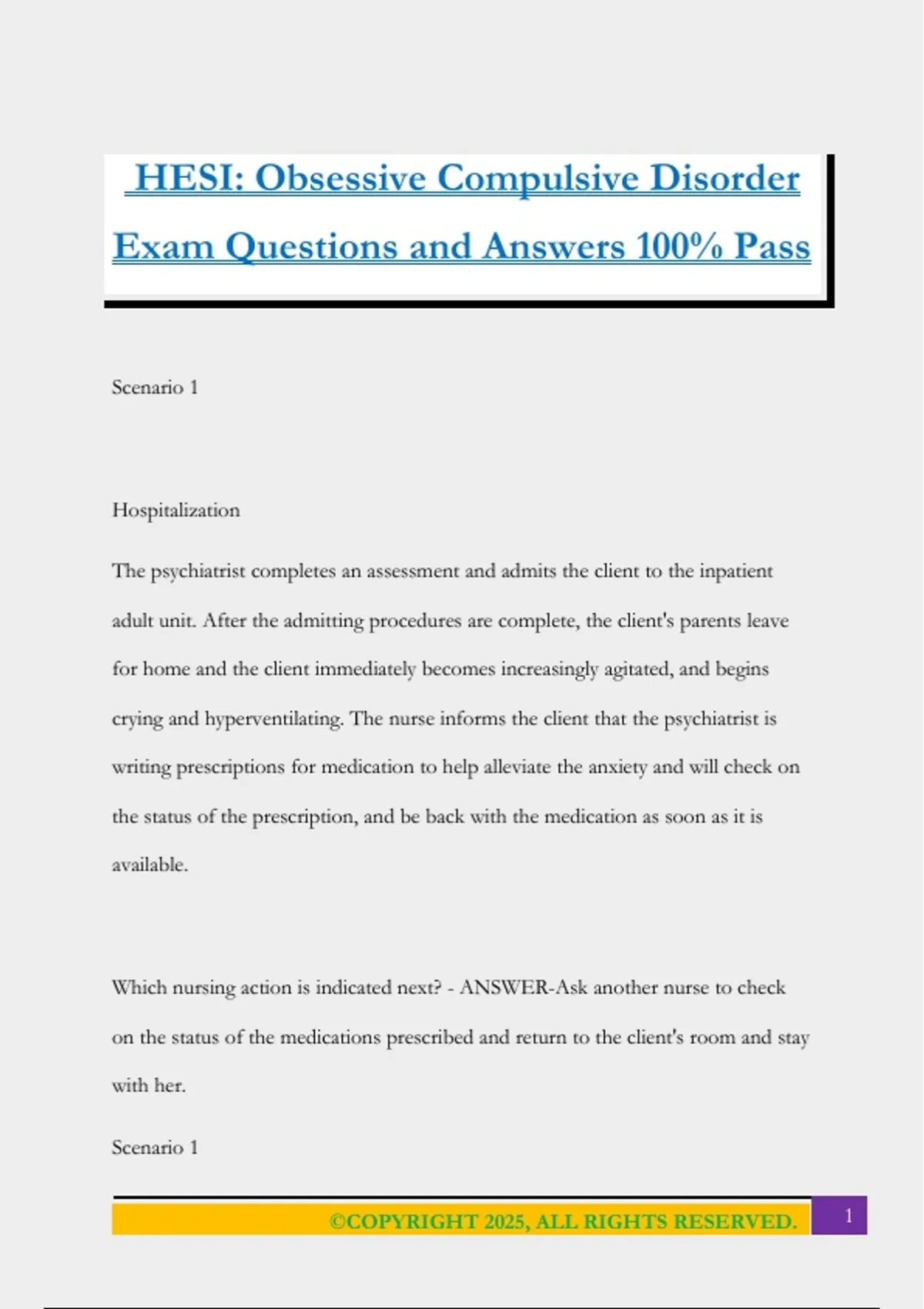 HESI: Obsessive Compulsive Disorder