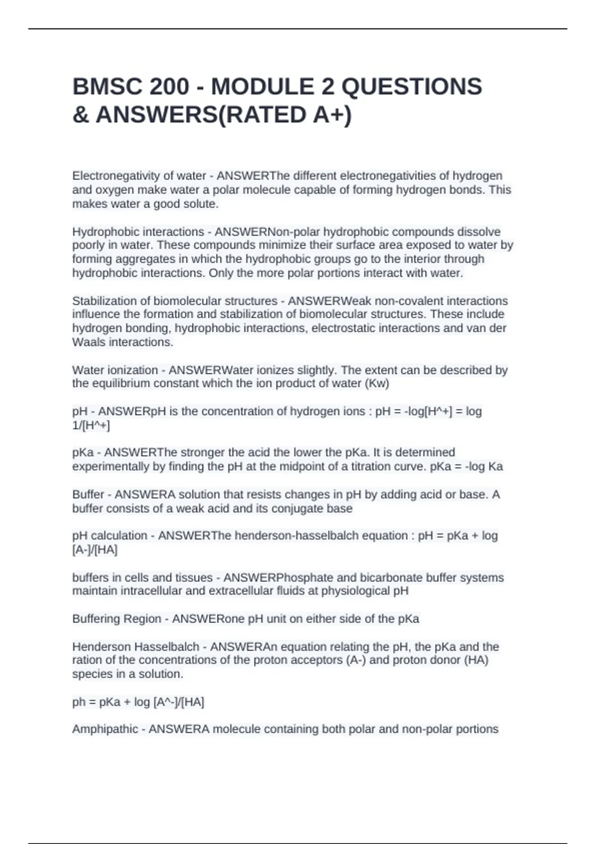 Henderson Hasselbalch - ANSWERAn equation relating the pH, the pKa and the