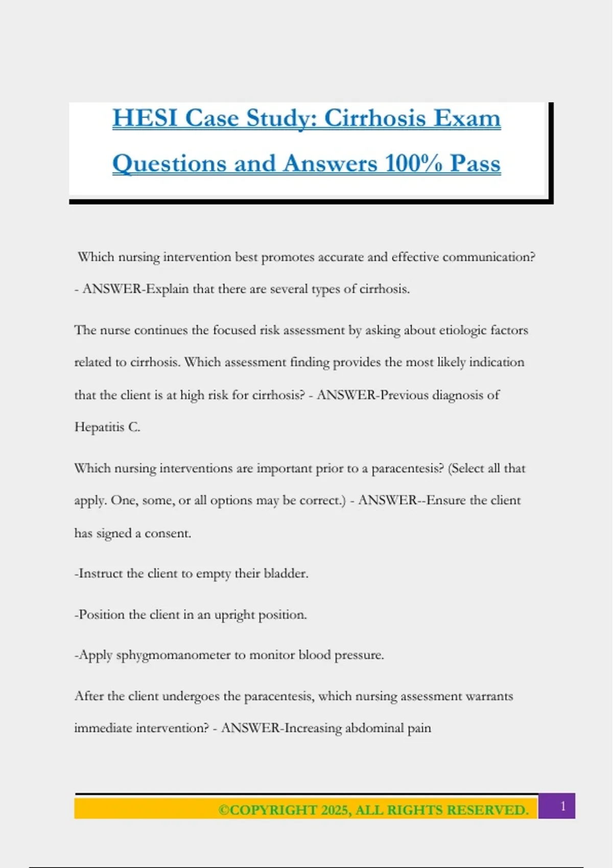 HESI Case Study: Cirrhosis Exam Questions and Answers 100% Pass