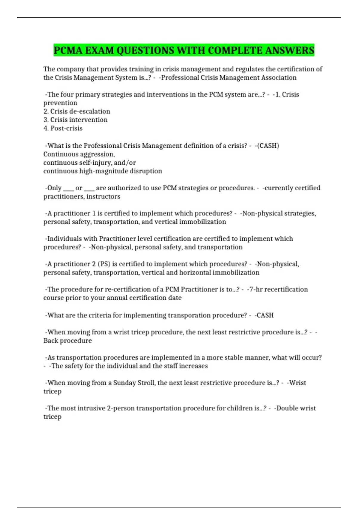 PCMA EXAM QUESTIONS WITH COMPLETE ANSWERS