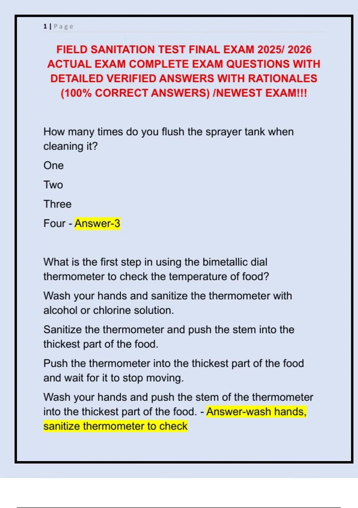 FIELD SANITATION TEST FINAL EXAM 2025/ 2026