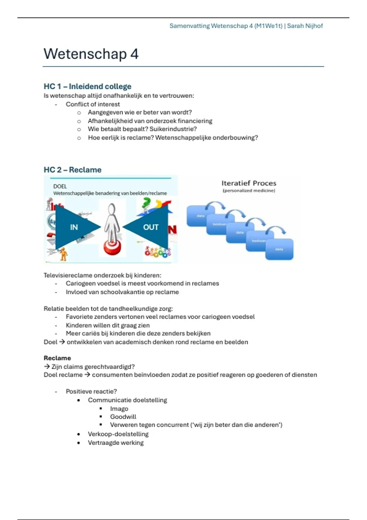 Samenvatting van alle hoorcolleges van Wetenschap 4 (M1We1t)