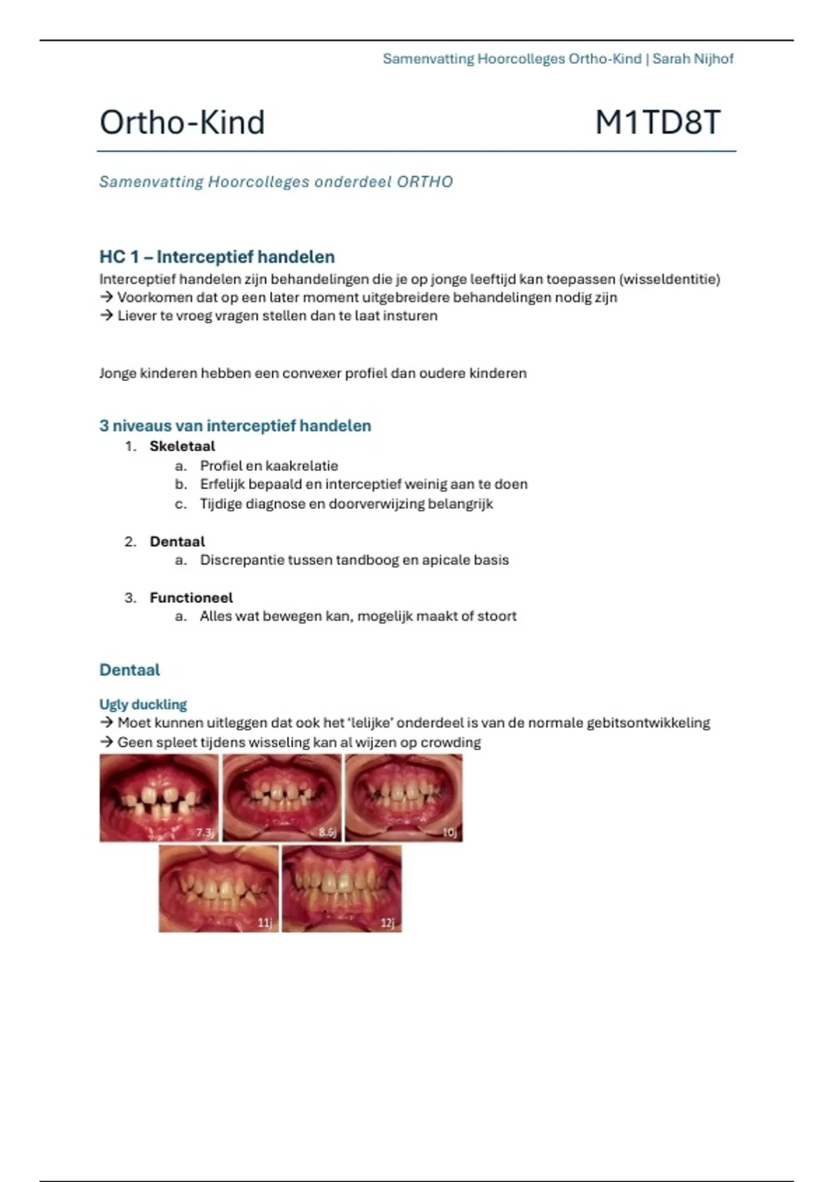 , Samenvatting Hoorcolleges Ortho-Kind | Sarah Nijhof