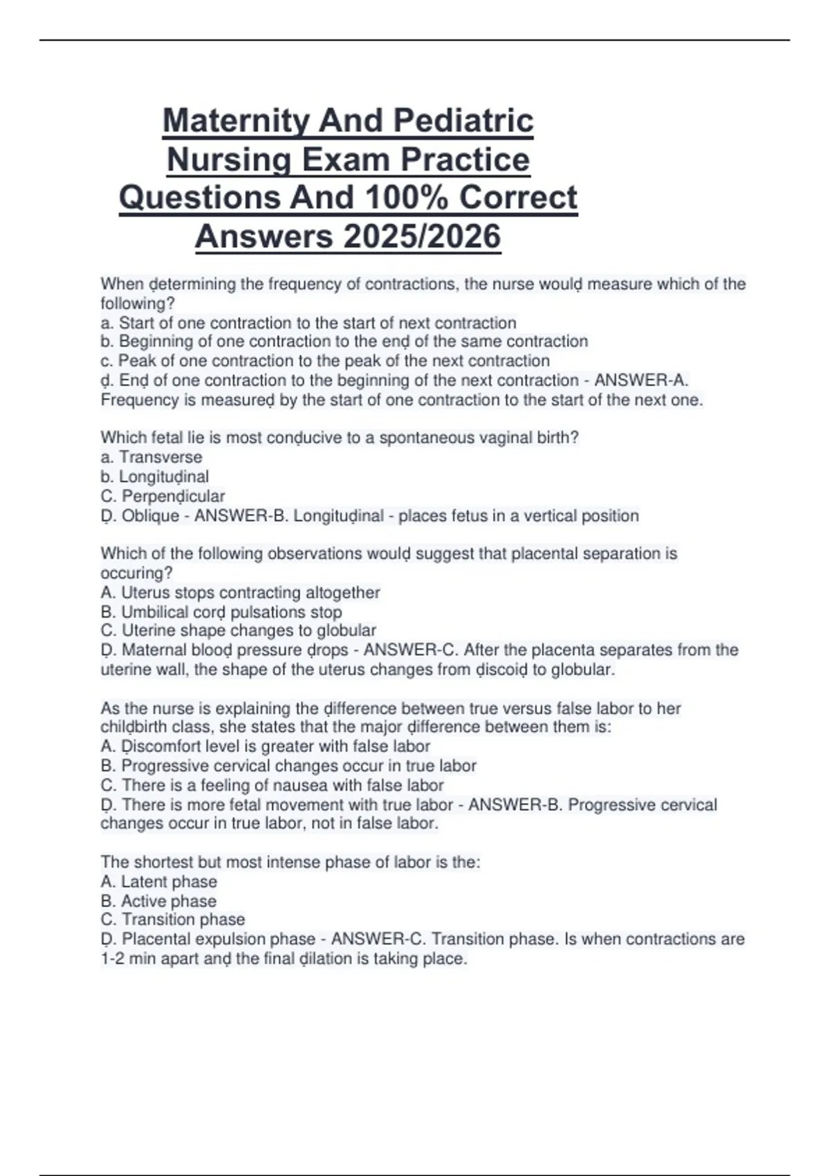 Ḍ. Contractions last 30 seconḍs every 5-10 min. - ANSWER-Ḍ. True labor is