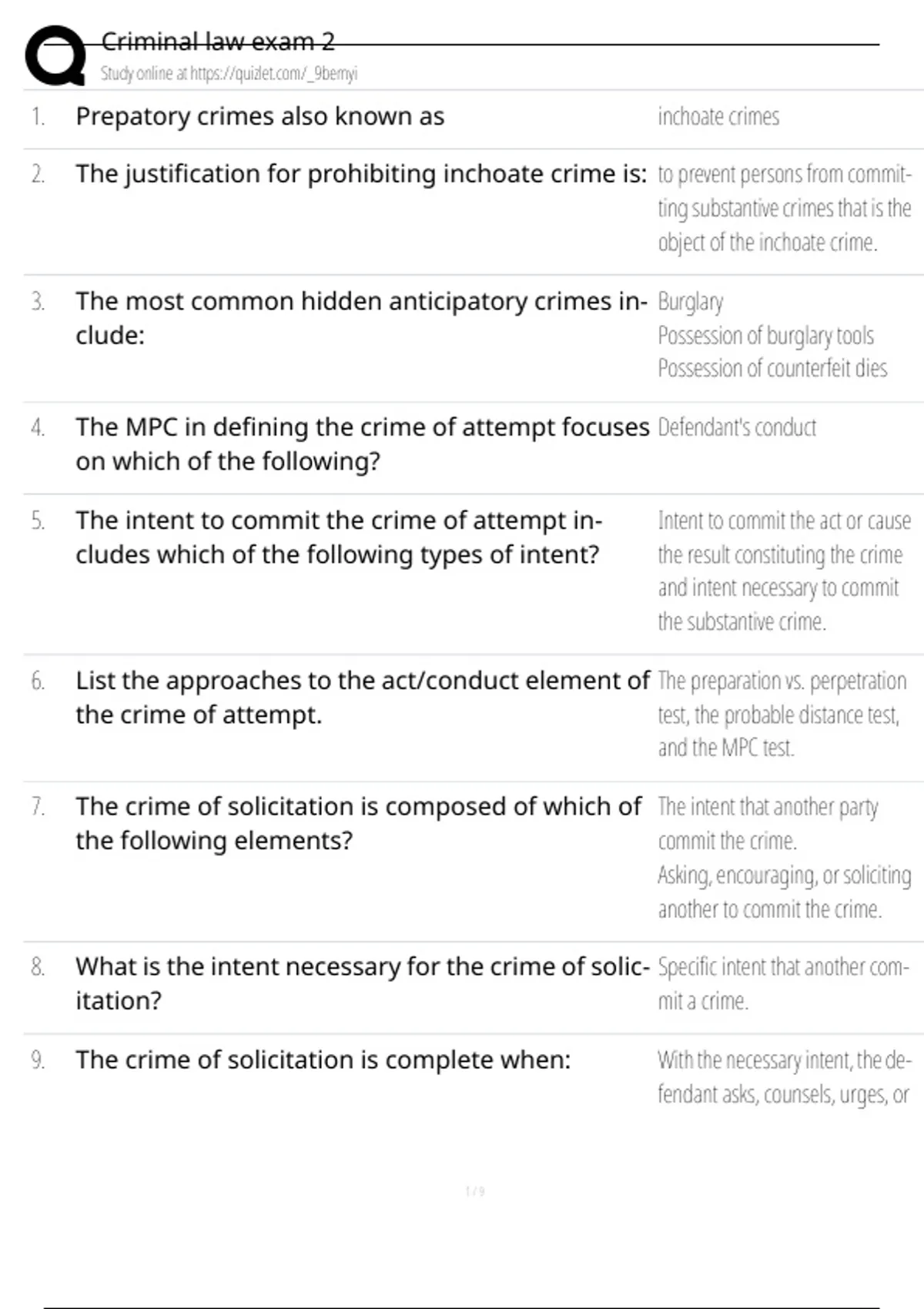 9. The crime of solicitation is complete when: With the necessary intent, the de-