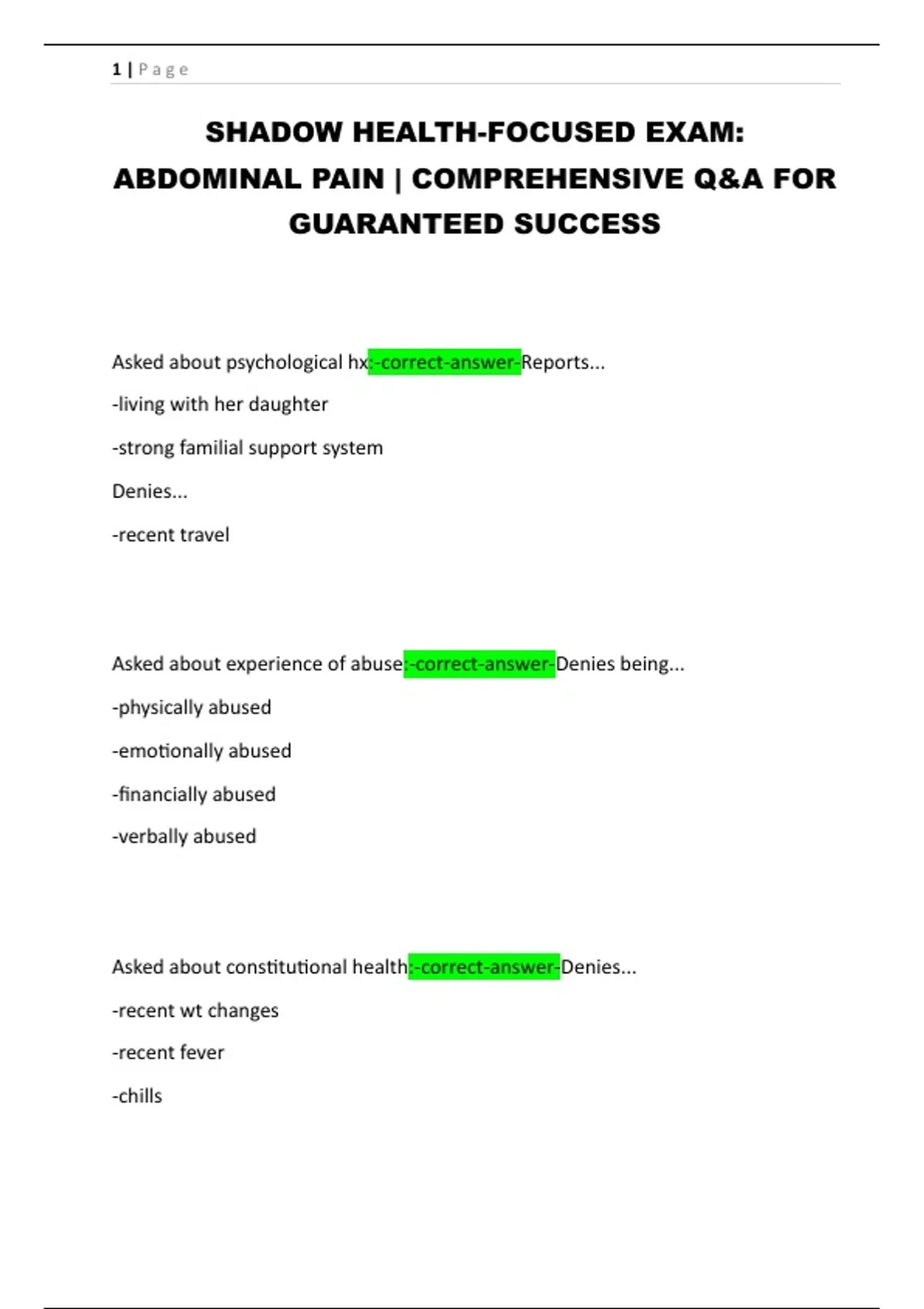 SHADOW HEALTH-FOCUSED EXAM:
