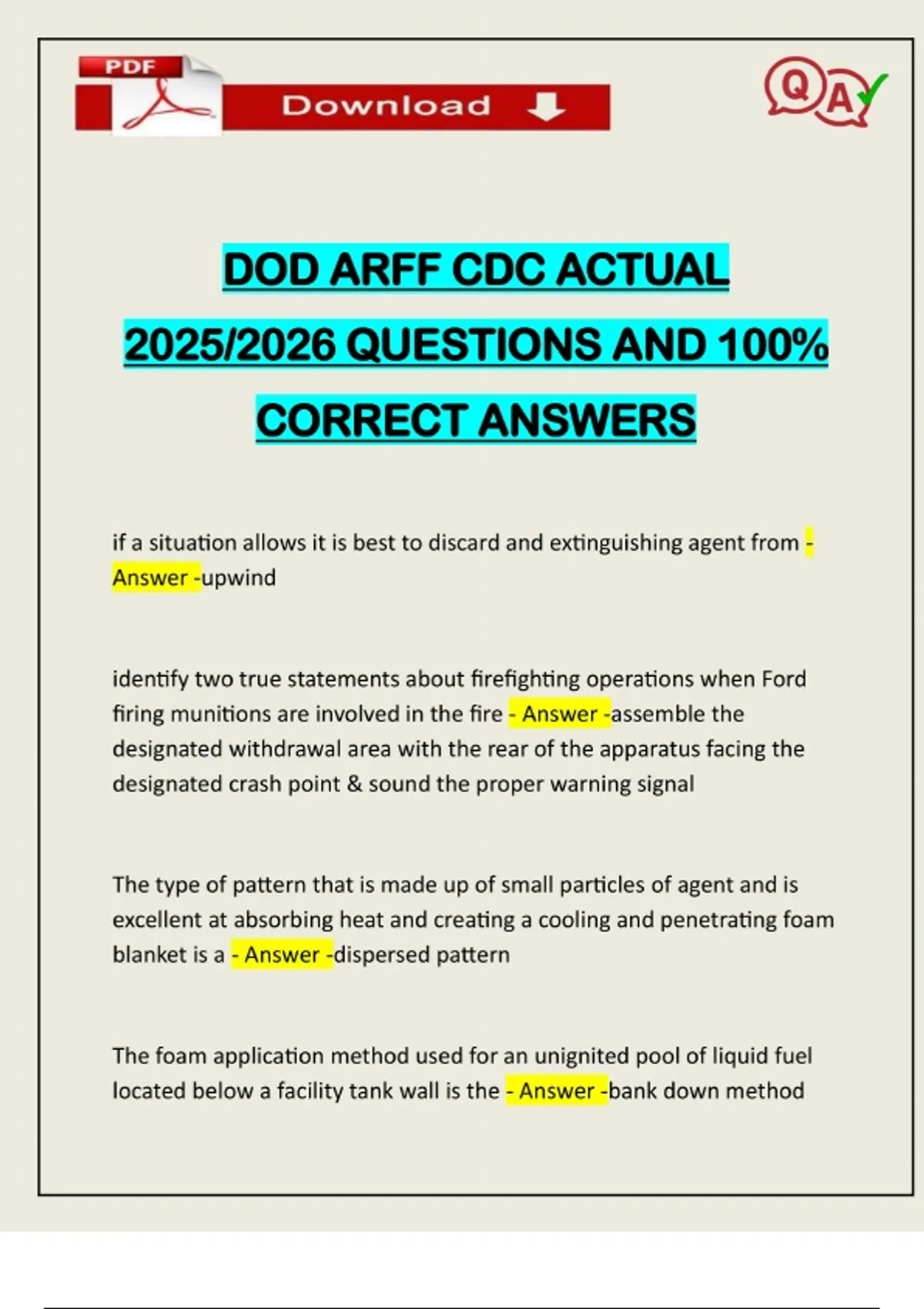 DOD ARFF CDC ACTUAL 2025/2026 QUESTIONS AND 100% CORRECT ANSWERS