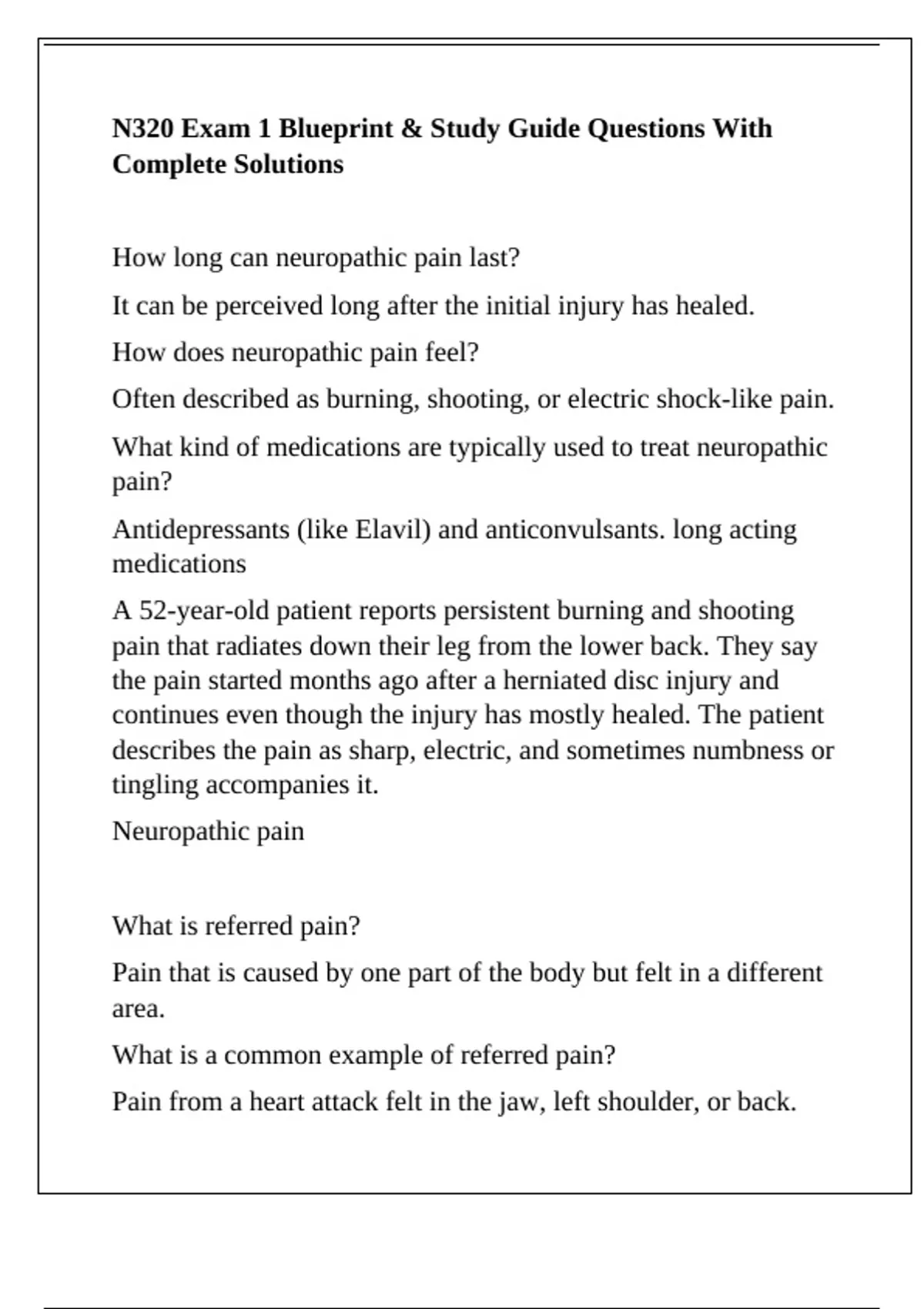 A 52-year-old patient reports persistent burning and shooting