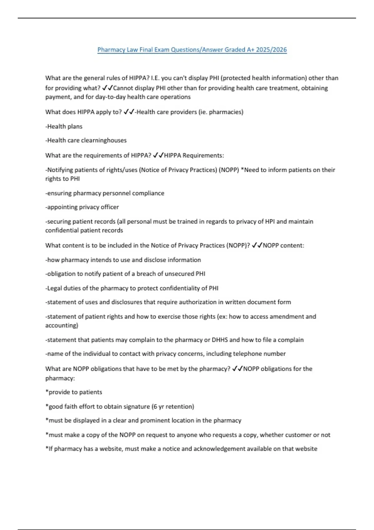 Pharmacy Law Final Exam Questions/Answer Graded A+ 2025/2026