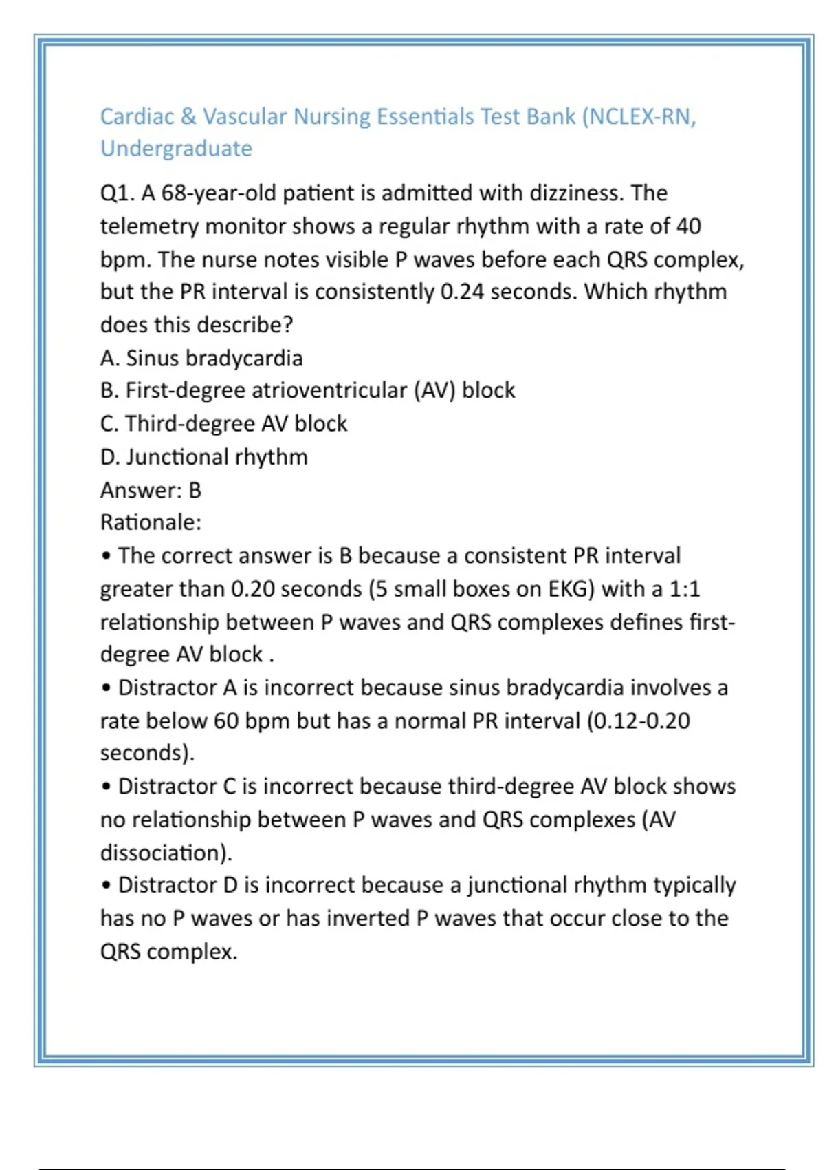 Q2. A nurse reviews an EKG strip for a patient with chest pain.