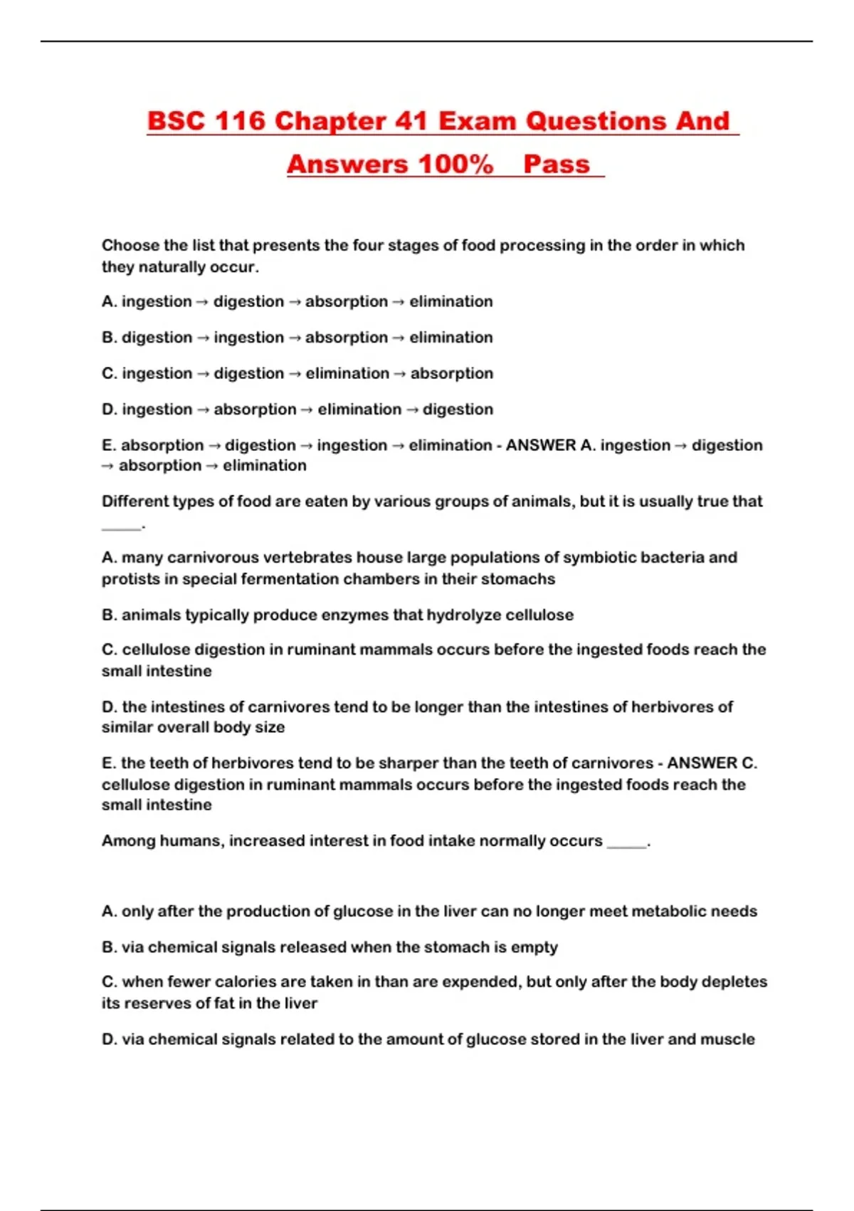 BSC 116 Chapter 41 Exam Questions And Answers 100% Pass ...