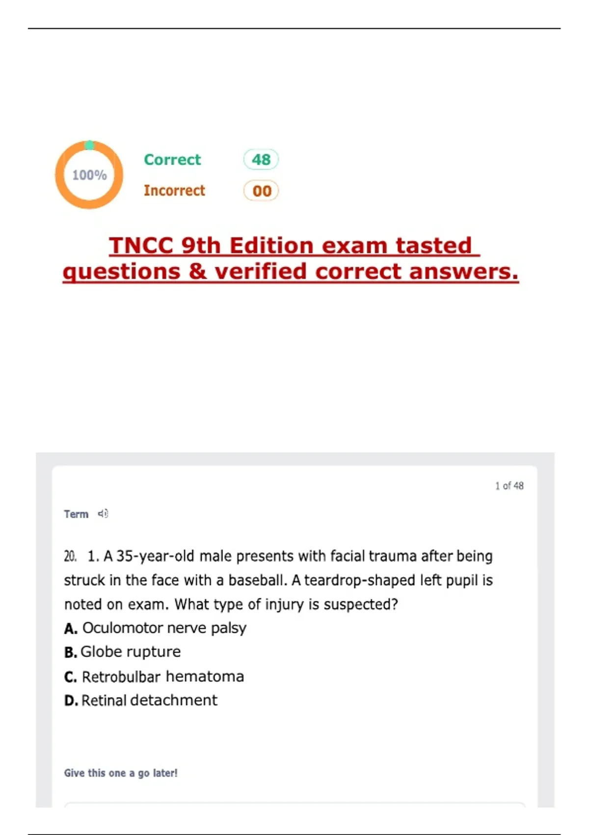 TNCC 9th Edition exam tasted questions & verified correct answers.