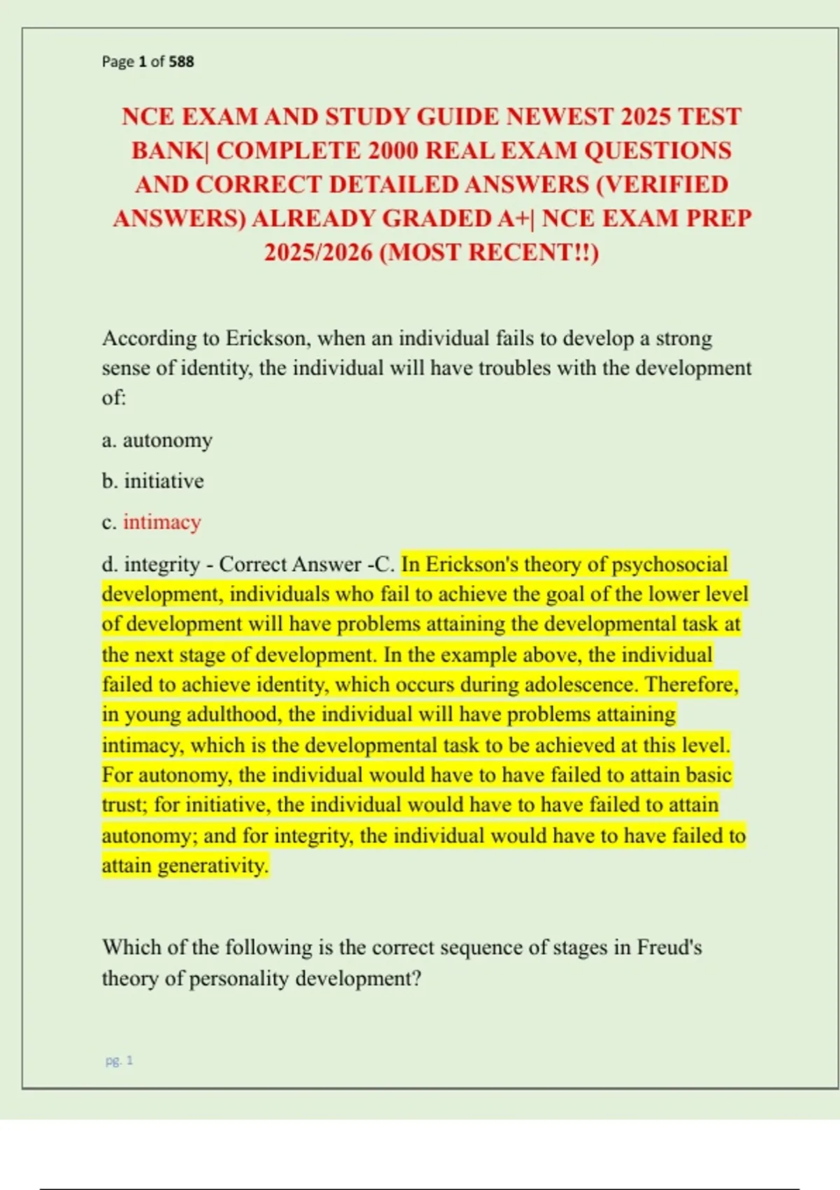 NCE EXAM AND STUDY GUIDE NEWEST 2025 TEST BANK| COMPLETE 2000 REAL EXAM QUESTIONS AND CORRECT DETAILED ANSWERS (VERIFIED ANSWERS) ALREADY GRADED A+| NCE EXAM PREP 2025/2026 (MOST RECENT!!)
