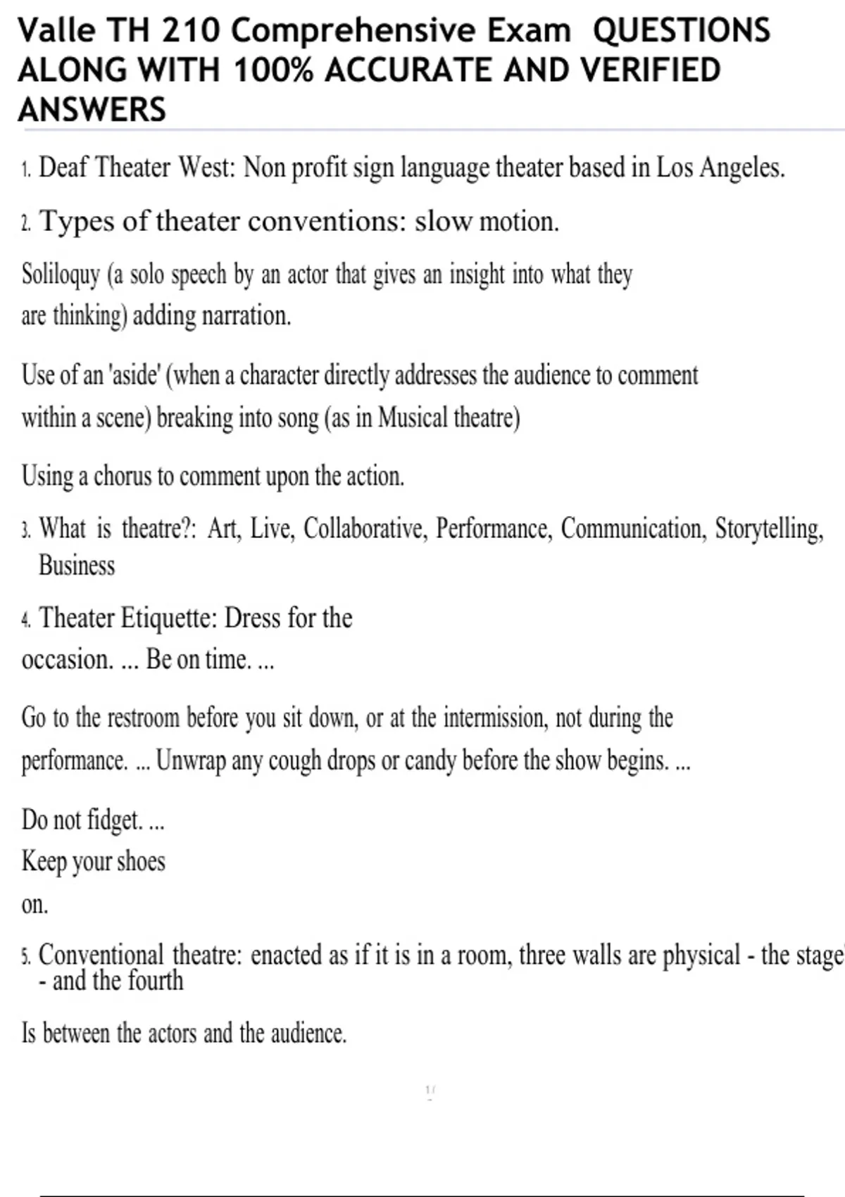 Valle TH 210 Comprehensive Exam QUESTIONS