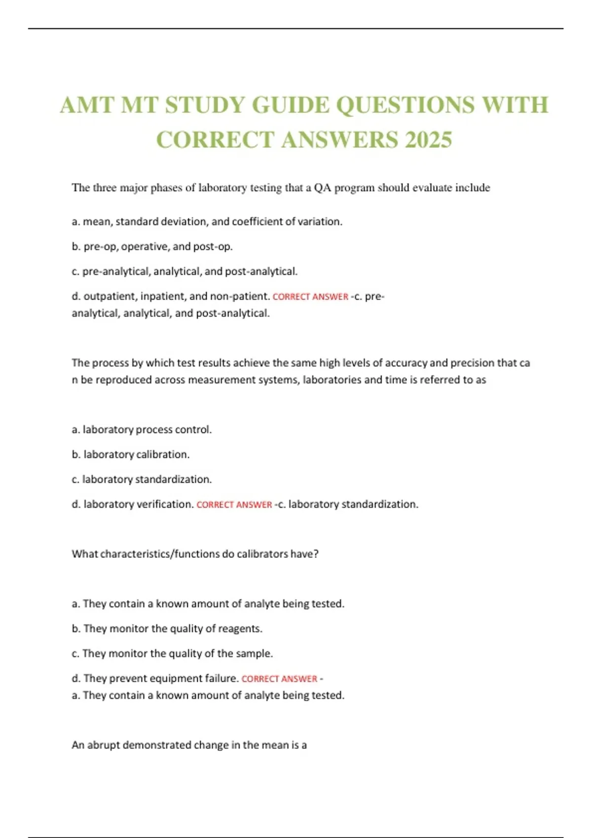 d. laboratory verification. CORRECT ANSWER -c. laboratory standardization.