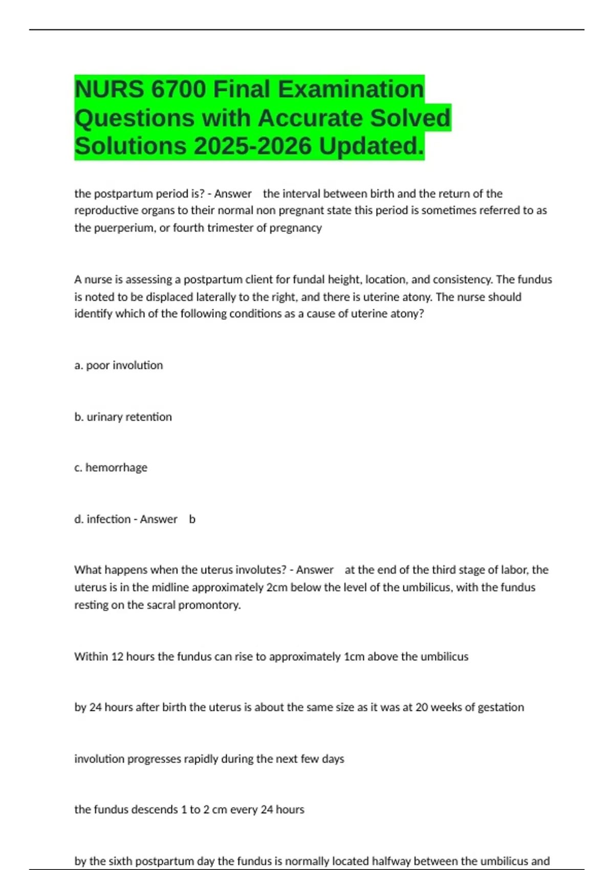 NURS 6700 Final Examination Questions with Accurate Solved Solutions Updated.