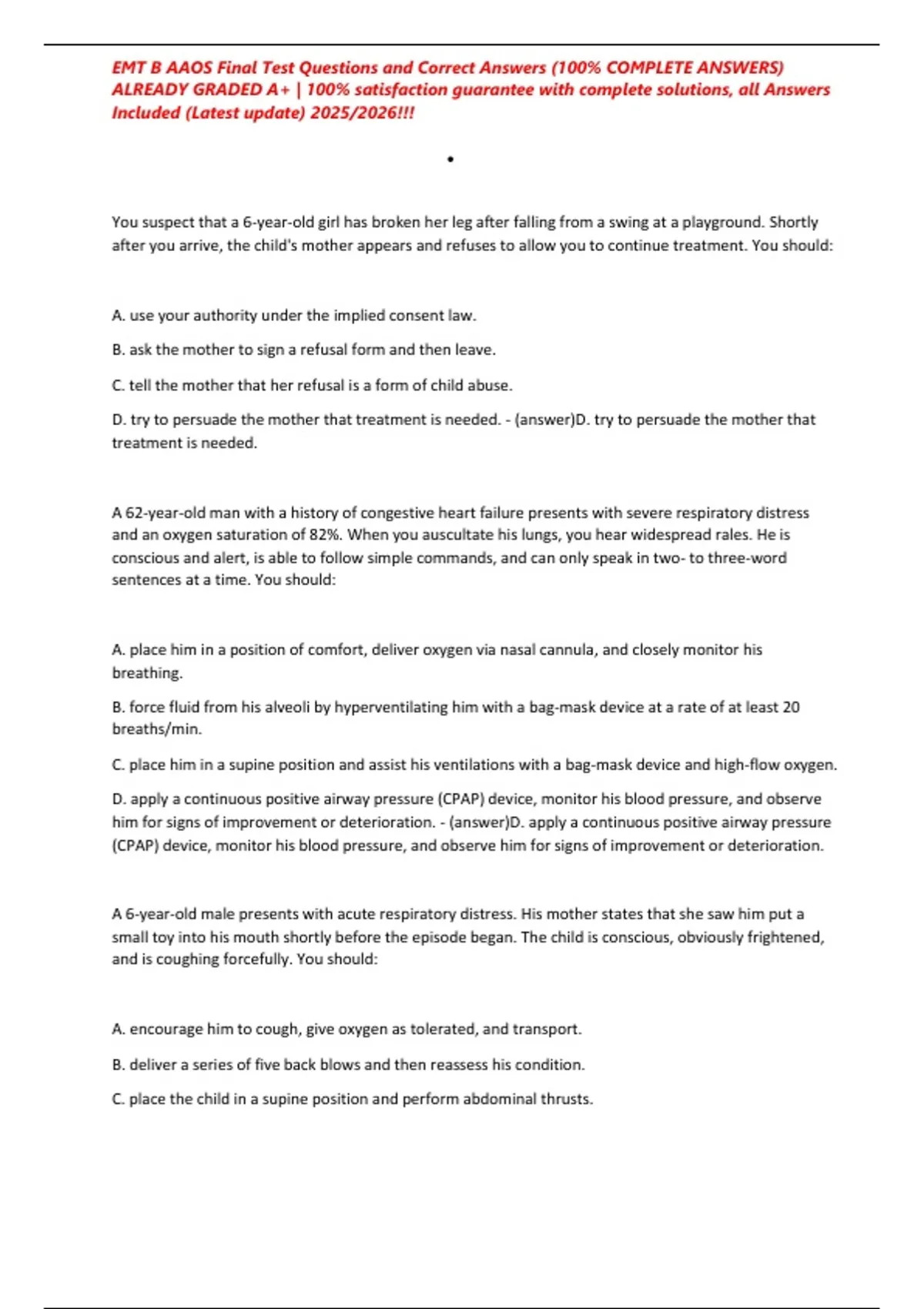 ,EMT B AAOS Final Test Questions and Correct Answers (100% COMPLETE ANSWERS)