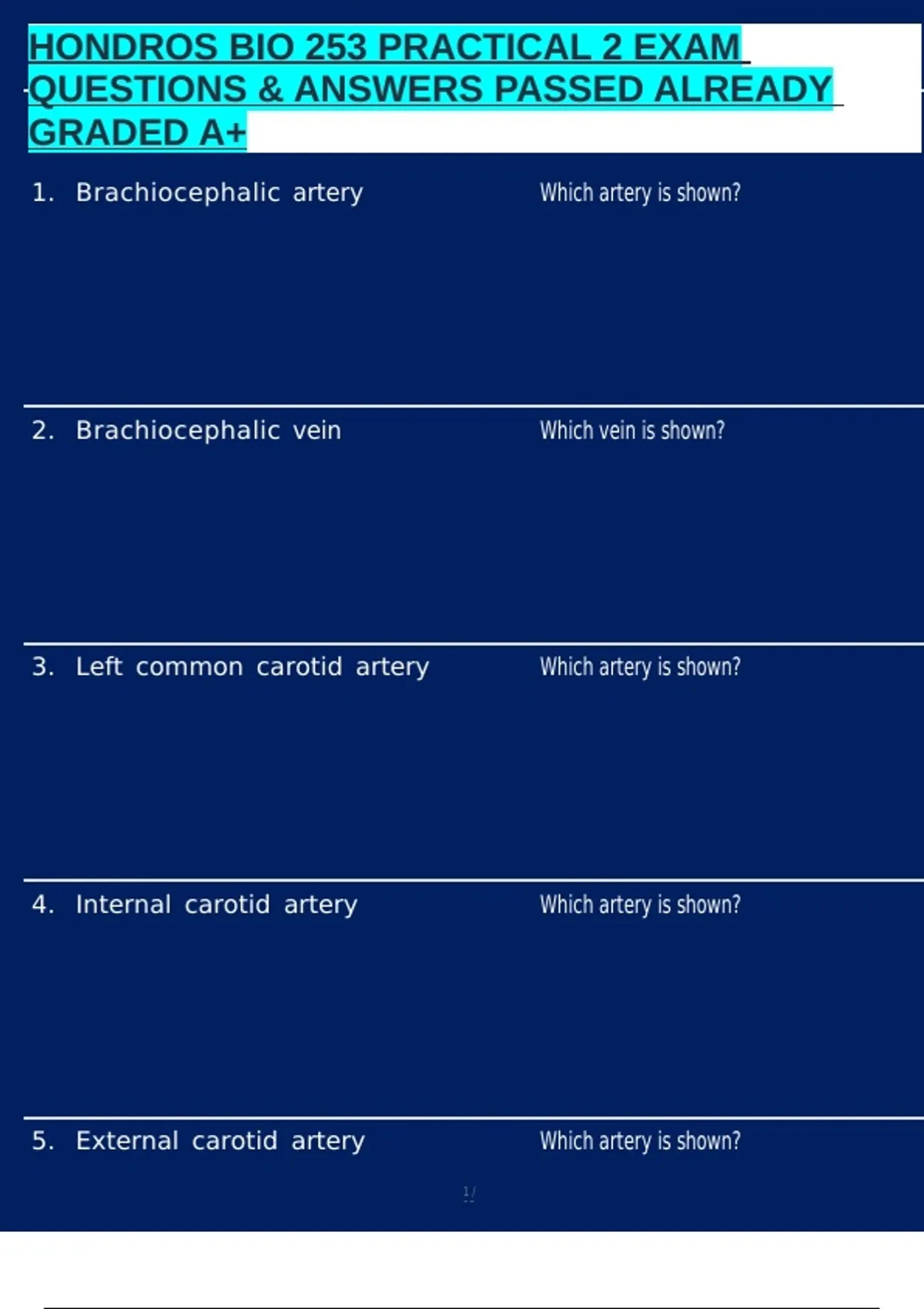 1. Brachiocephalic artery Which artery is shown?