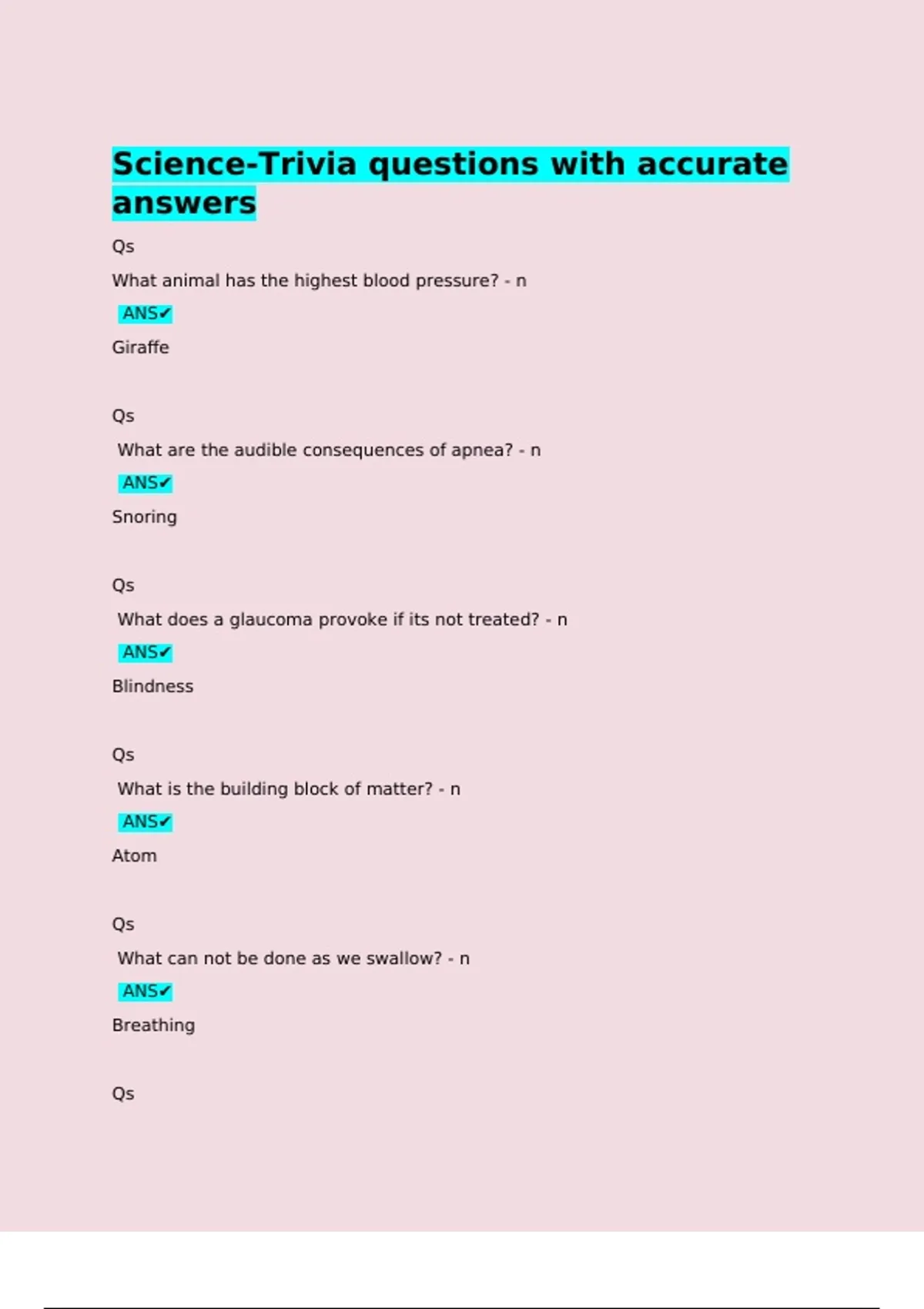 Science-Trivia questions with accurate