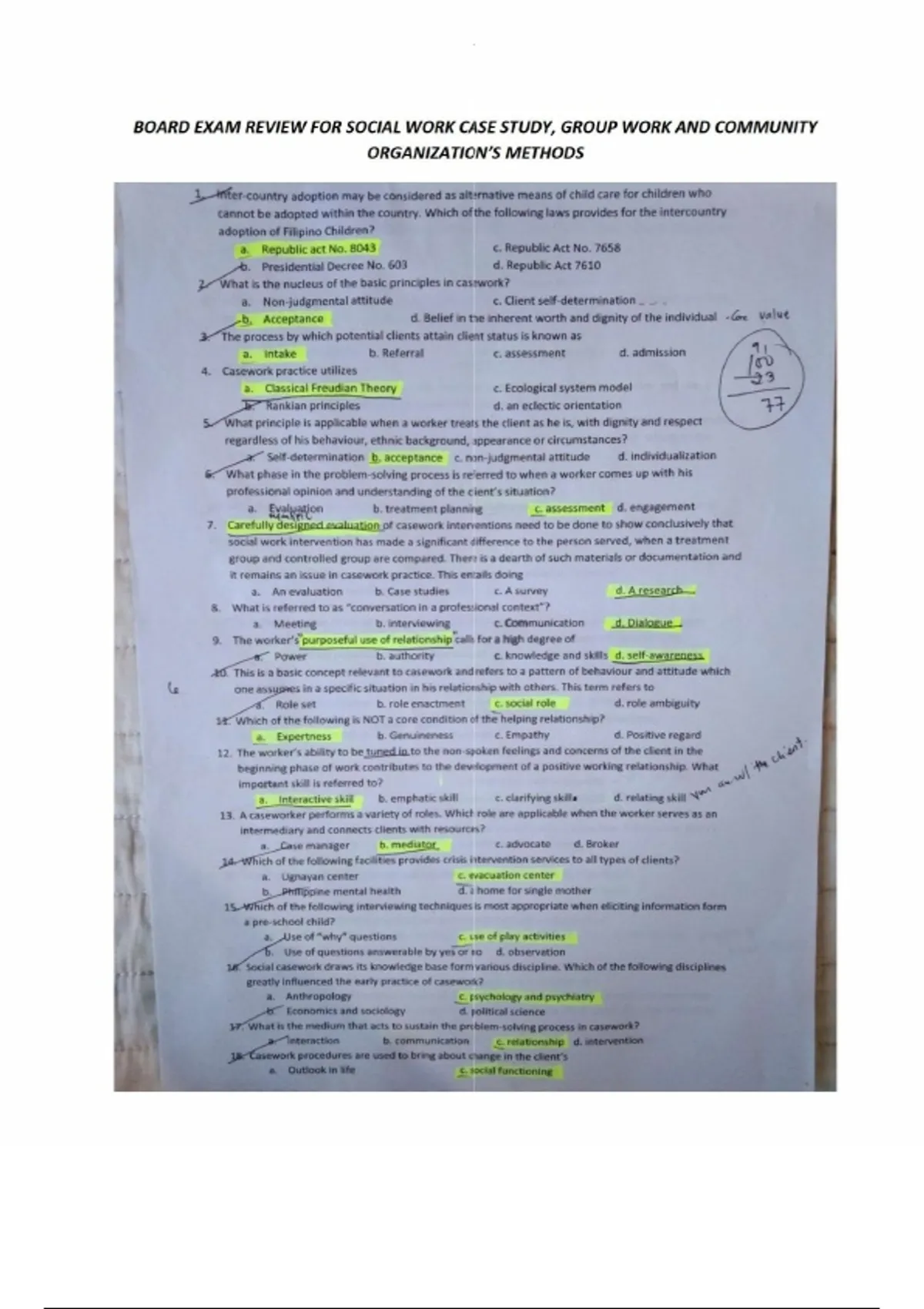 Board exam review for social work case study