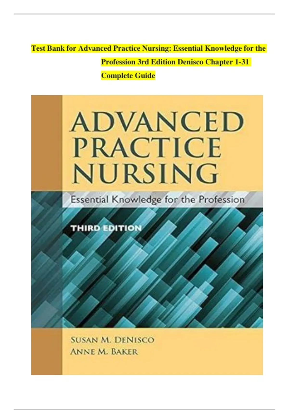 Test bank for Advanced Practice Nursing: Essential Knowledge for the Profession, 3rd Edition – Denisco | Test Bank Chapters 1–31 | Complete Guide for APN Exam Prep