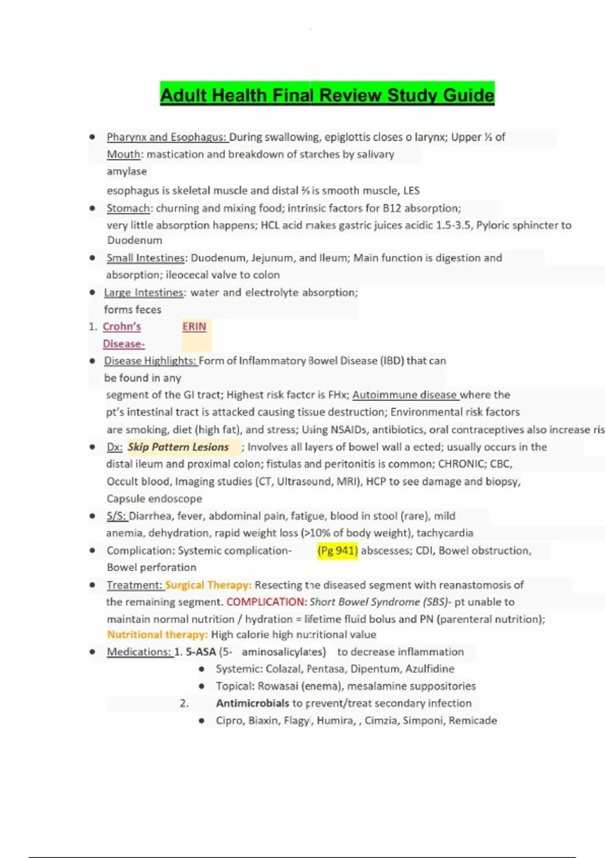 Adult Health Final Review Study GuideAdult Health Final Review Study Guide