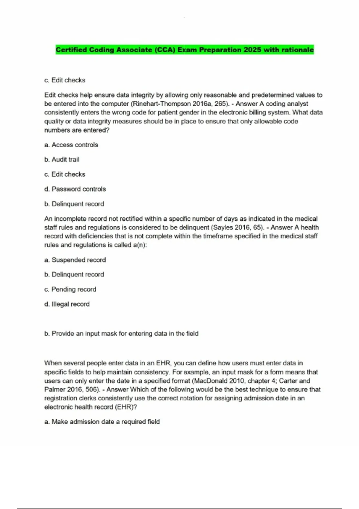 Certified Coding Associate (CCA) Exam Preparation 2025 with rationaleCertified Coding Associate (CCA) Exam Preparation 2025 with rationale