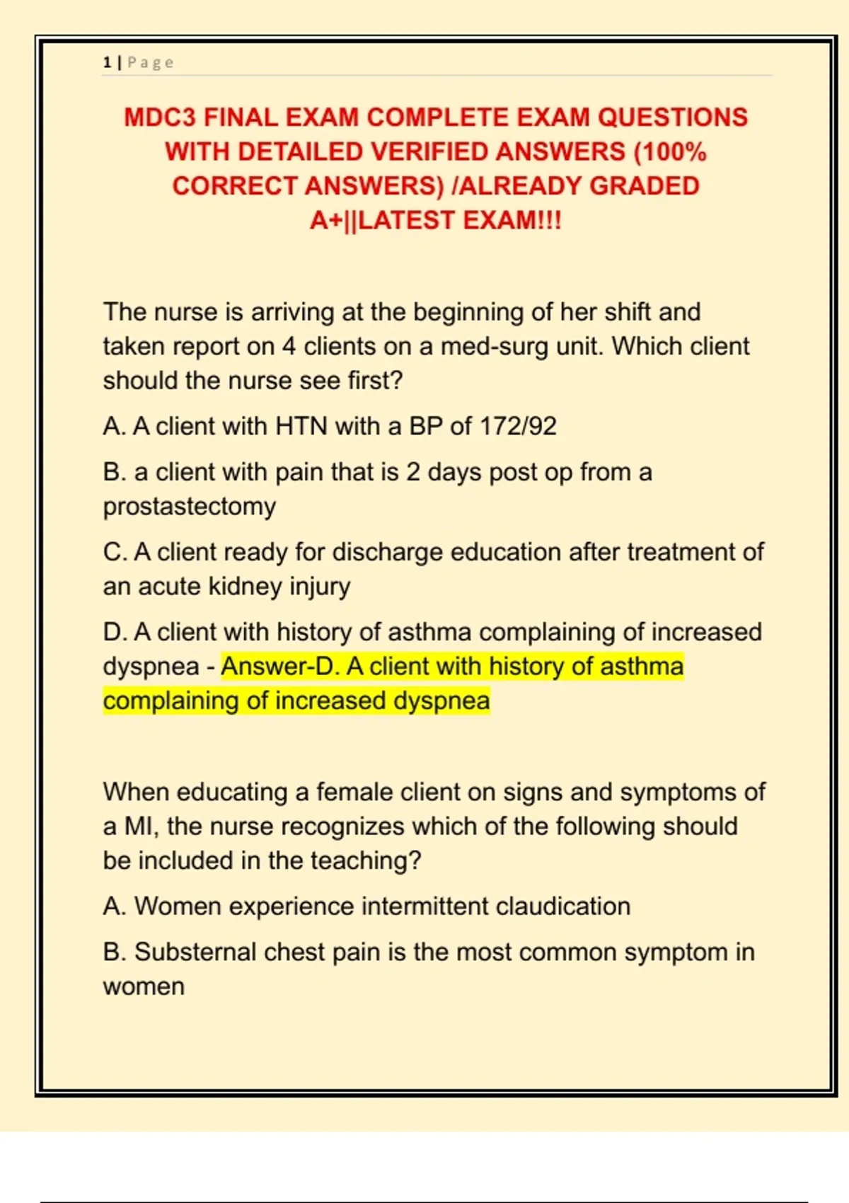 MDC3 FINAL EXAM COMPLETE EXAM QUESTIONS