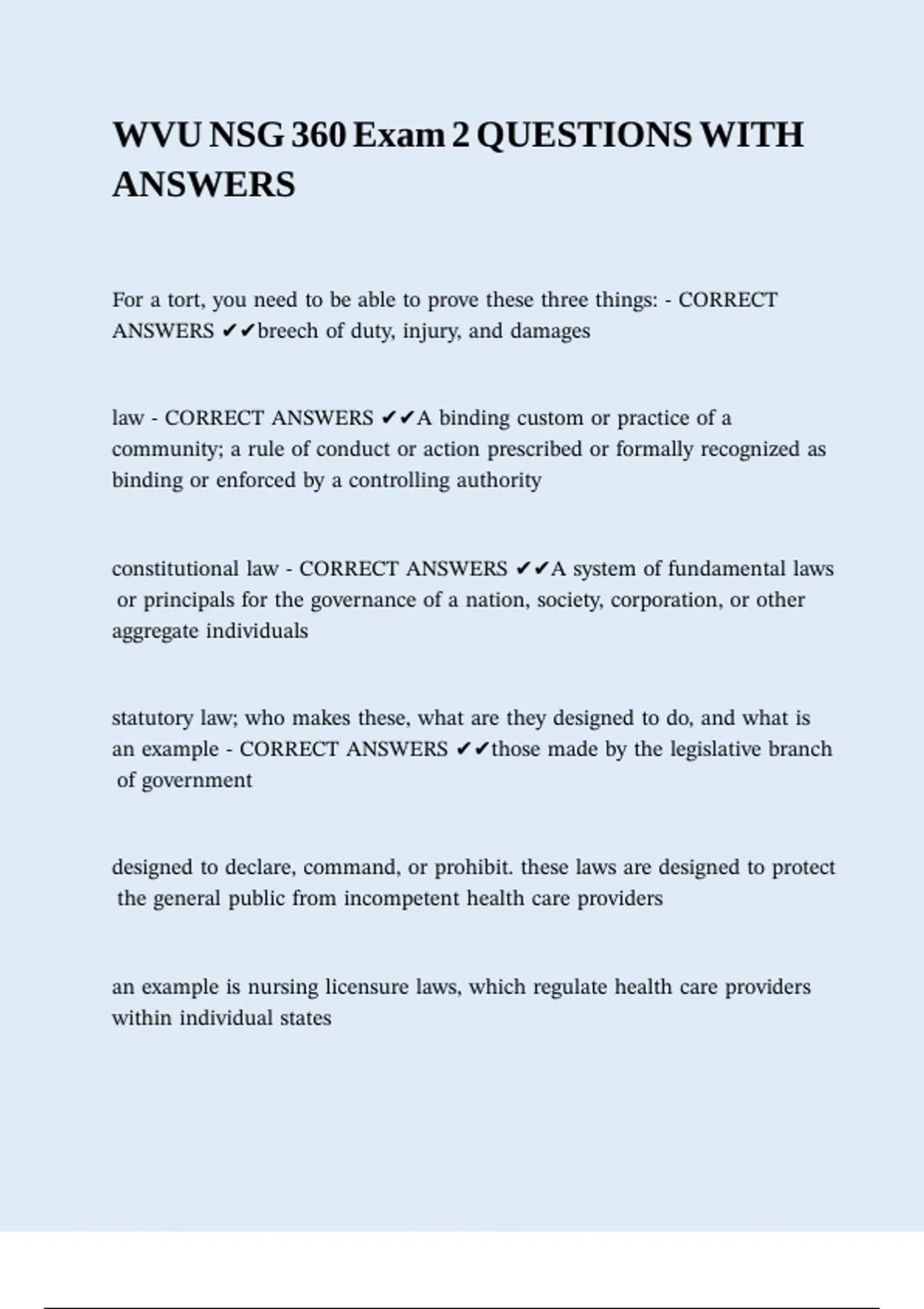 CORRECT ANSWERS ✔✔tort law |\ |\ |\