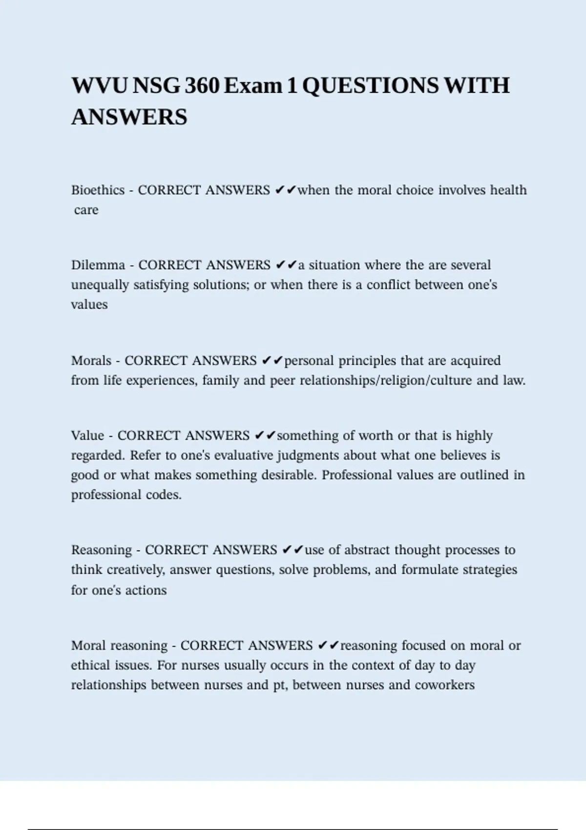 WVU NSG 360 Exam 1 QUESTIONS WITH ANSWERS