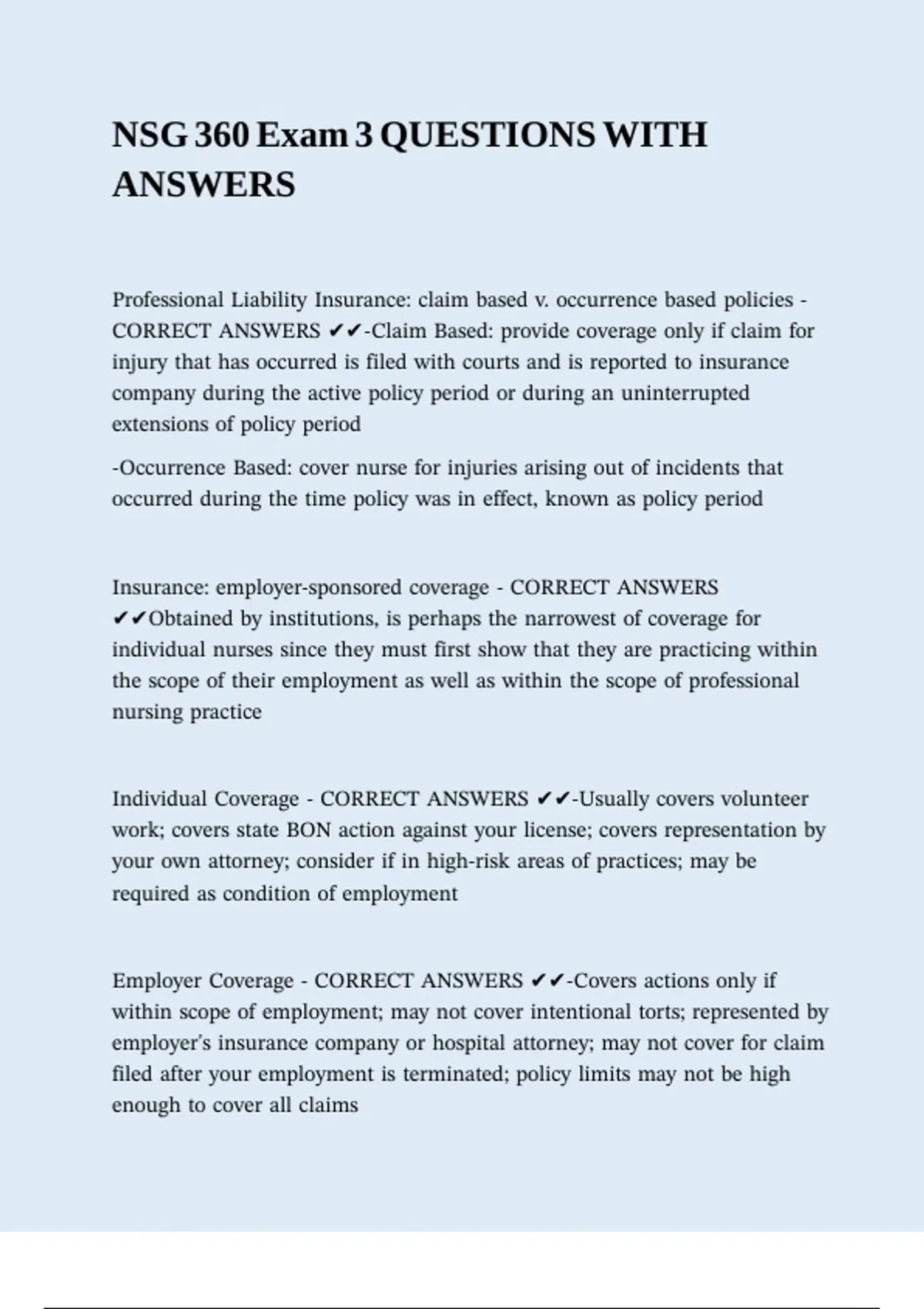 CORRECT ANSWERS ✔✔-Claim Based: provide coverage only if claim for