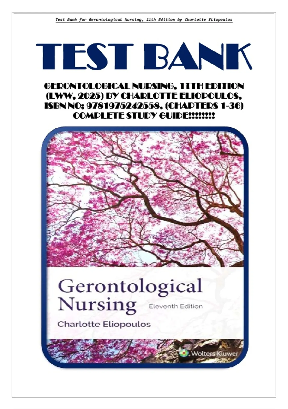 Test Bank for Gerontological Nursing, 11th Edition by Charlotte Eliopoulos