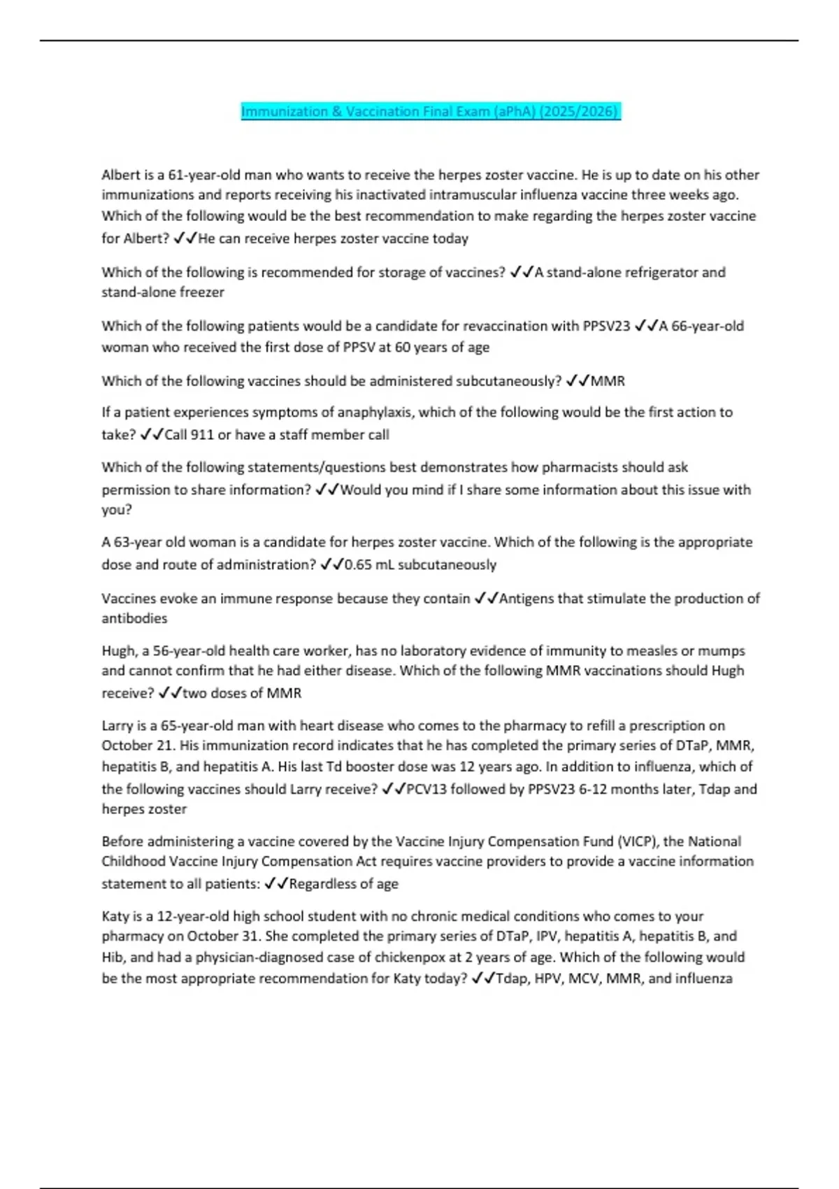 Immunization & Vaccination Final Exam (aPhA) (2025/2026)