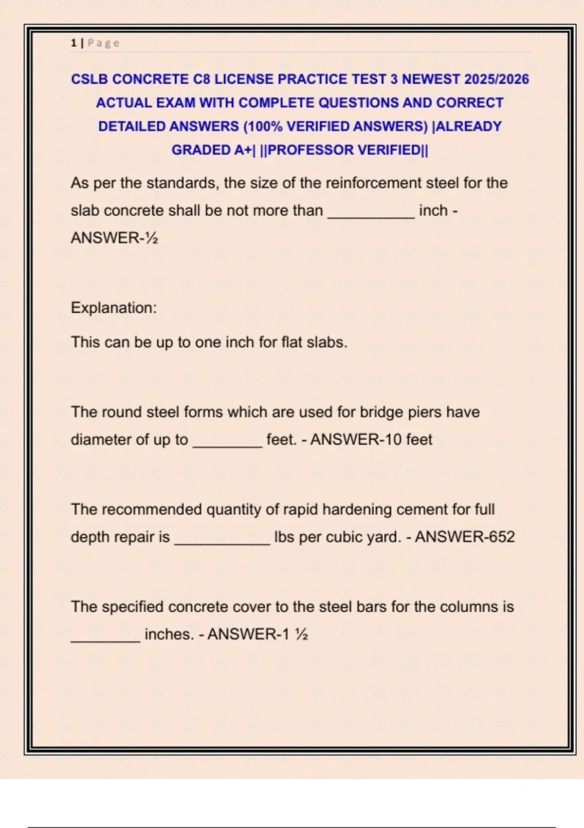 CSLB CONCRETE C8 LICENSE PRACTICE TEST 3 NEWEST 2025/2026