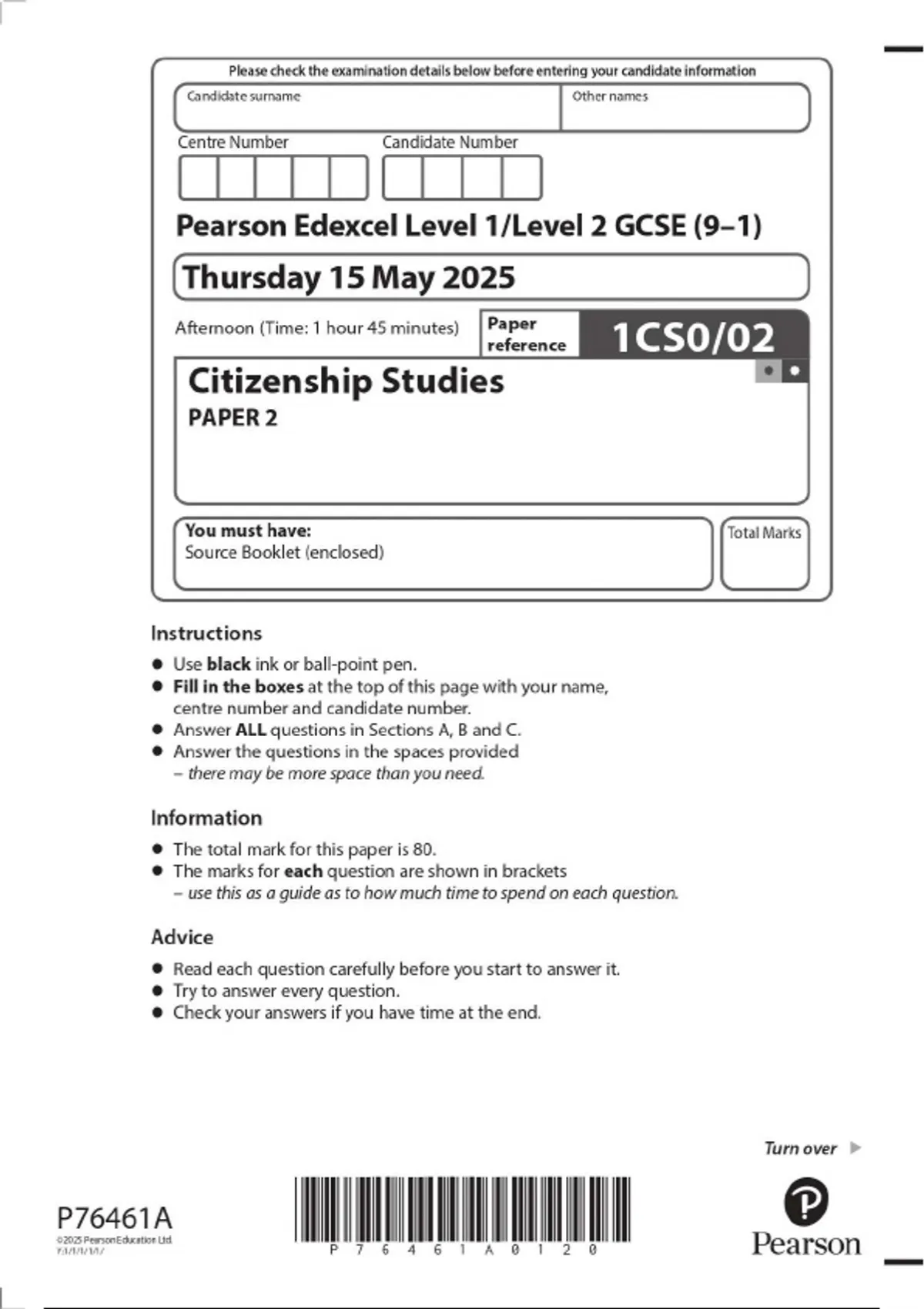 2025 Pearson Edexcel Level 1/Level 2 GCSE. 1CS0/02 Citizenship Studies PAPER 2 2025 Pearson Edexcel Level 1/Level 2 GCSE. 1CS0/02 Citizenship Studies PAPER 2