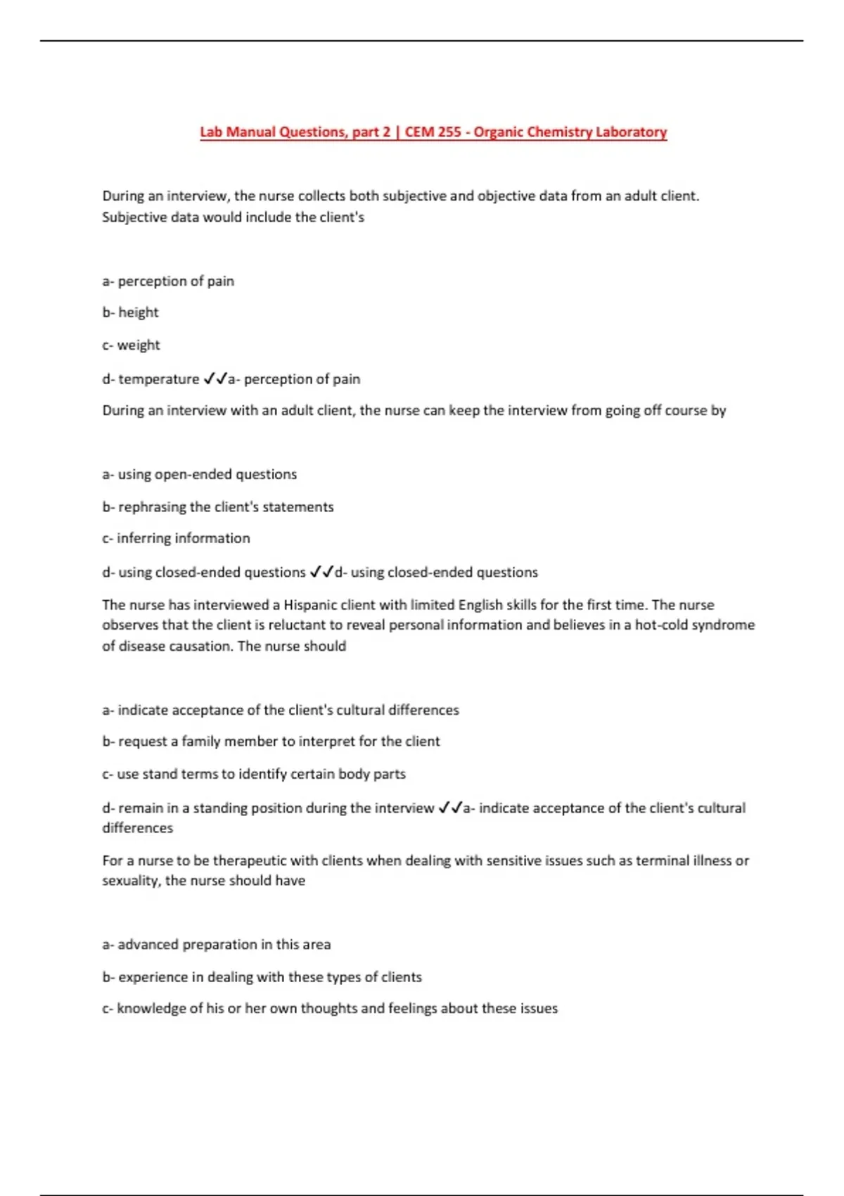 During an interview, the nurse collects both subjective and objective data from an adult client.