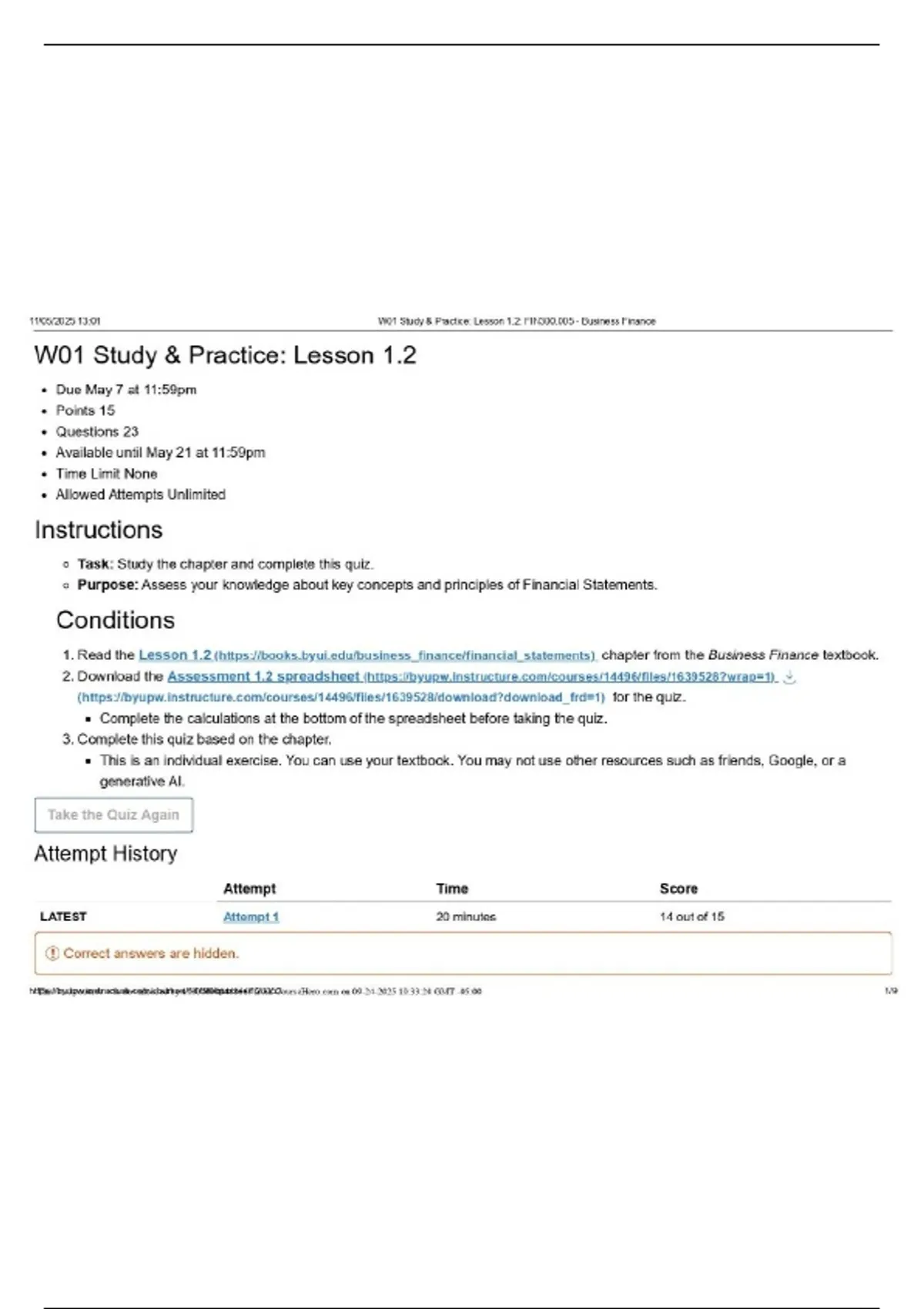 FIN 300 W01 Study & Practice: Lesson 1.2 | Questions and Answers | 2025/26 Update | 100% Correct -BYU.