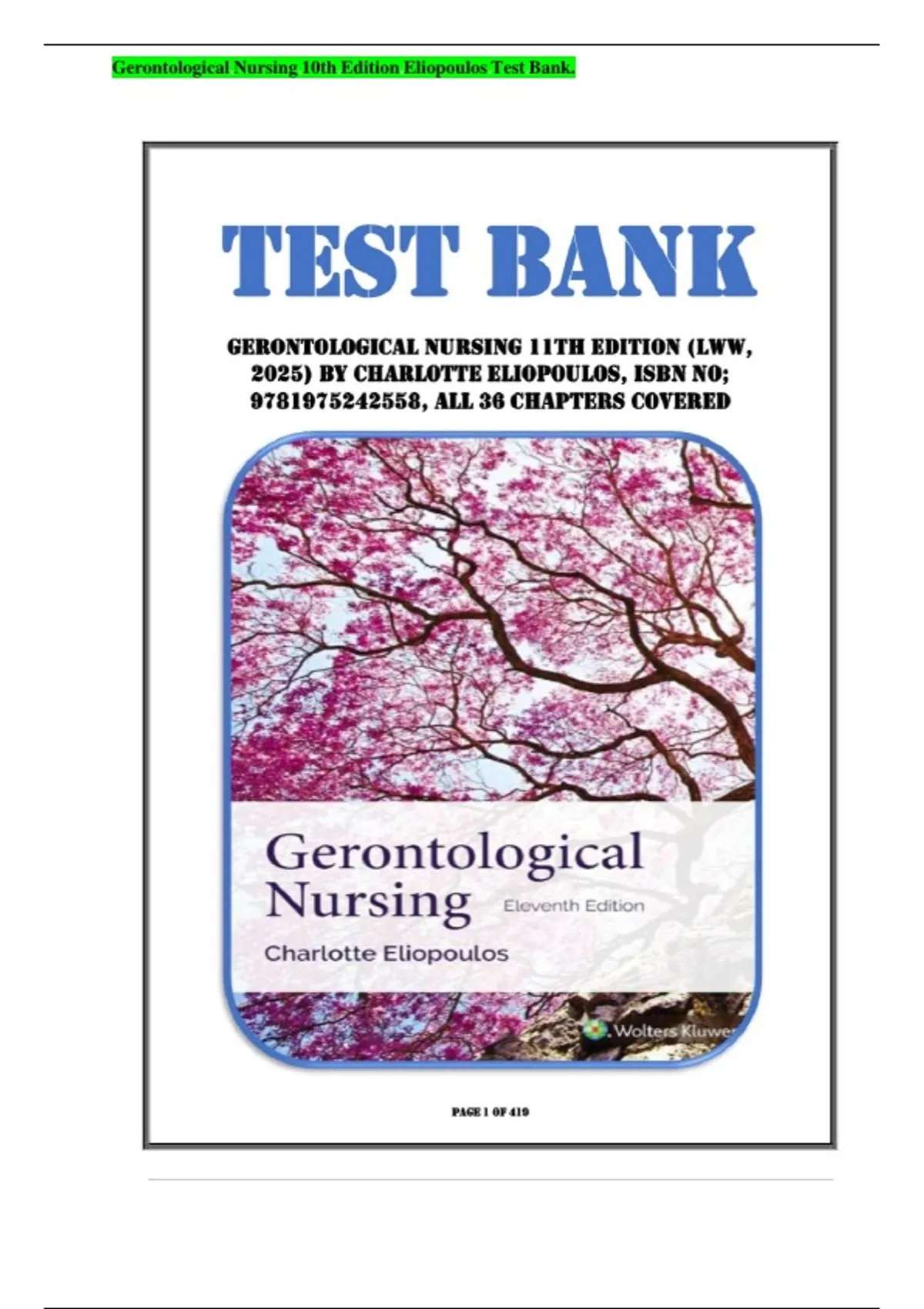 , Gerontological Nursing 10th Edition Eliopoulos Test Bank. g g g g g g