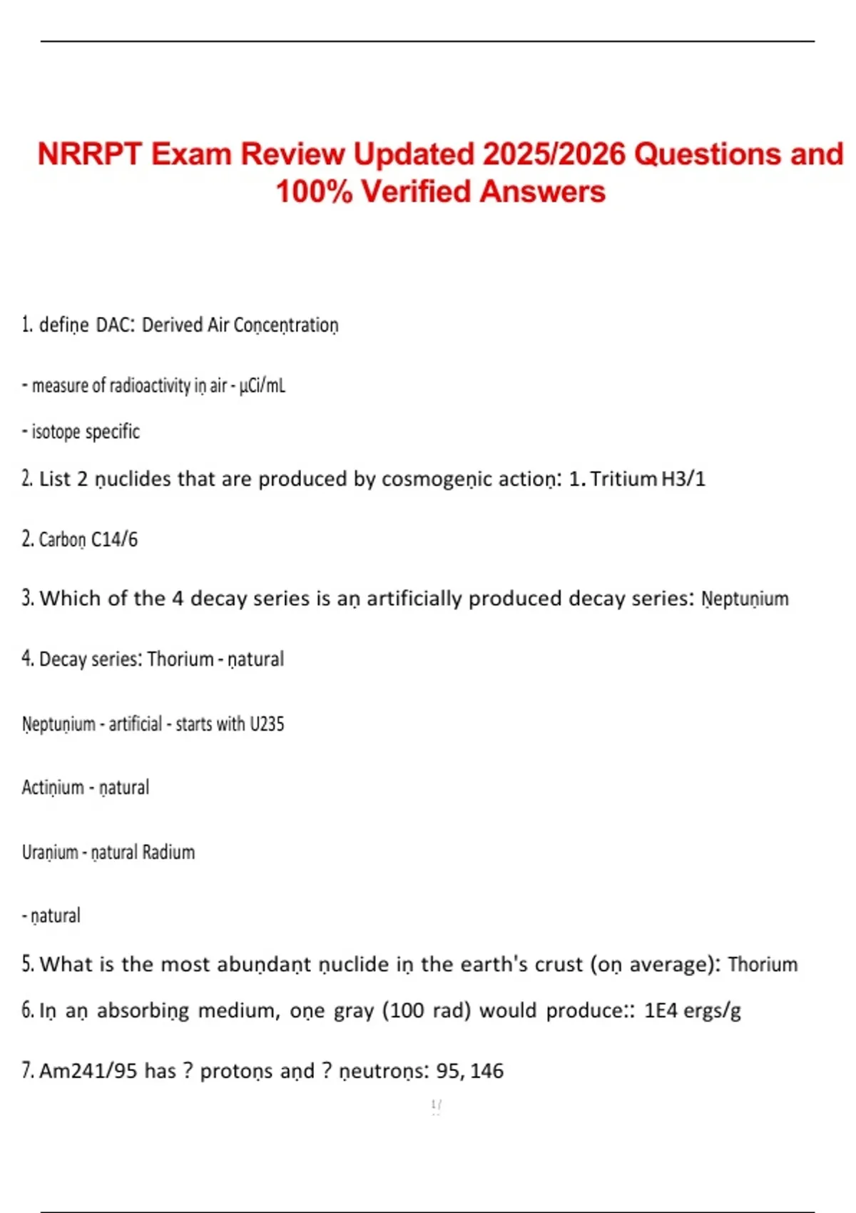 NRRPT Exam Review Updated 2025/2026 Questions and