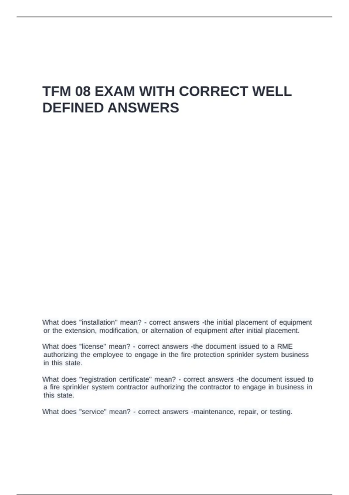 TFM 08 EXAM WITH CORRECT WELL DEFINED ANSWERS