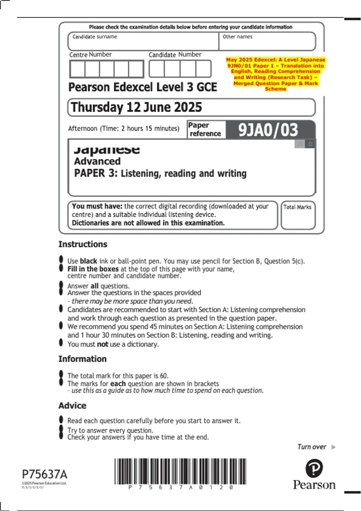 recommend you spend 45 minutes on Section A: Listening comprehension