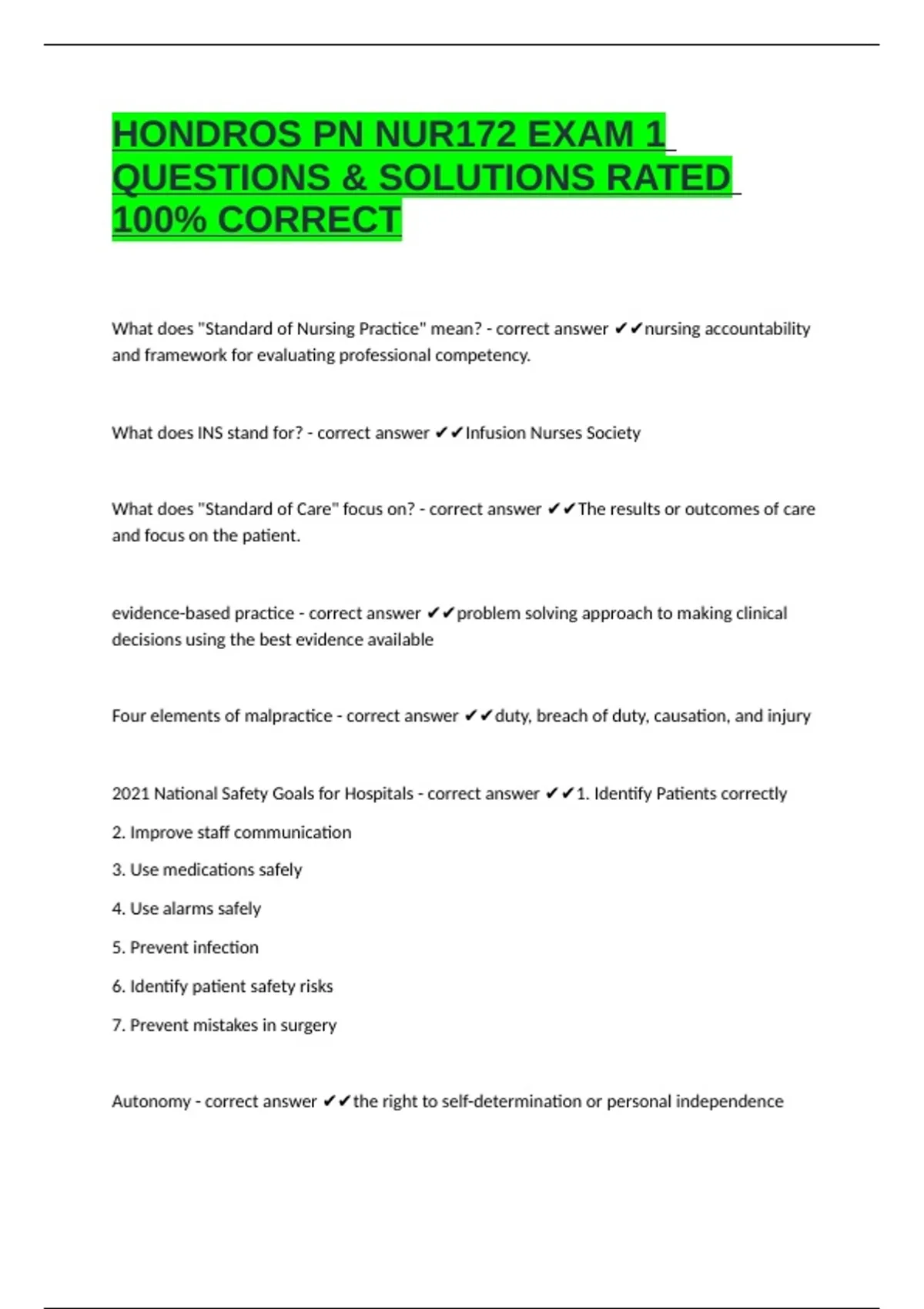 Four elements of malpractice - correct answer ✔✔duty, breach of duty, causation, and injury