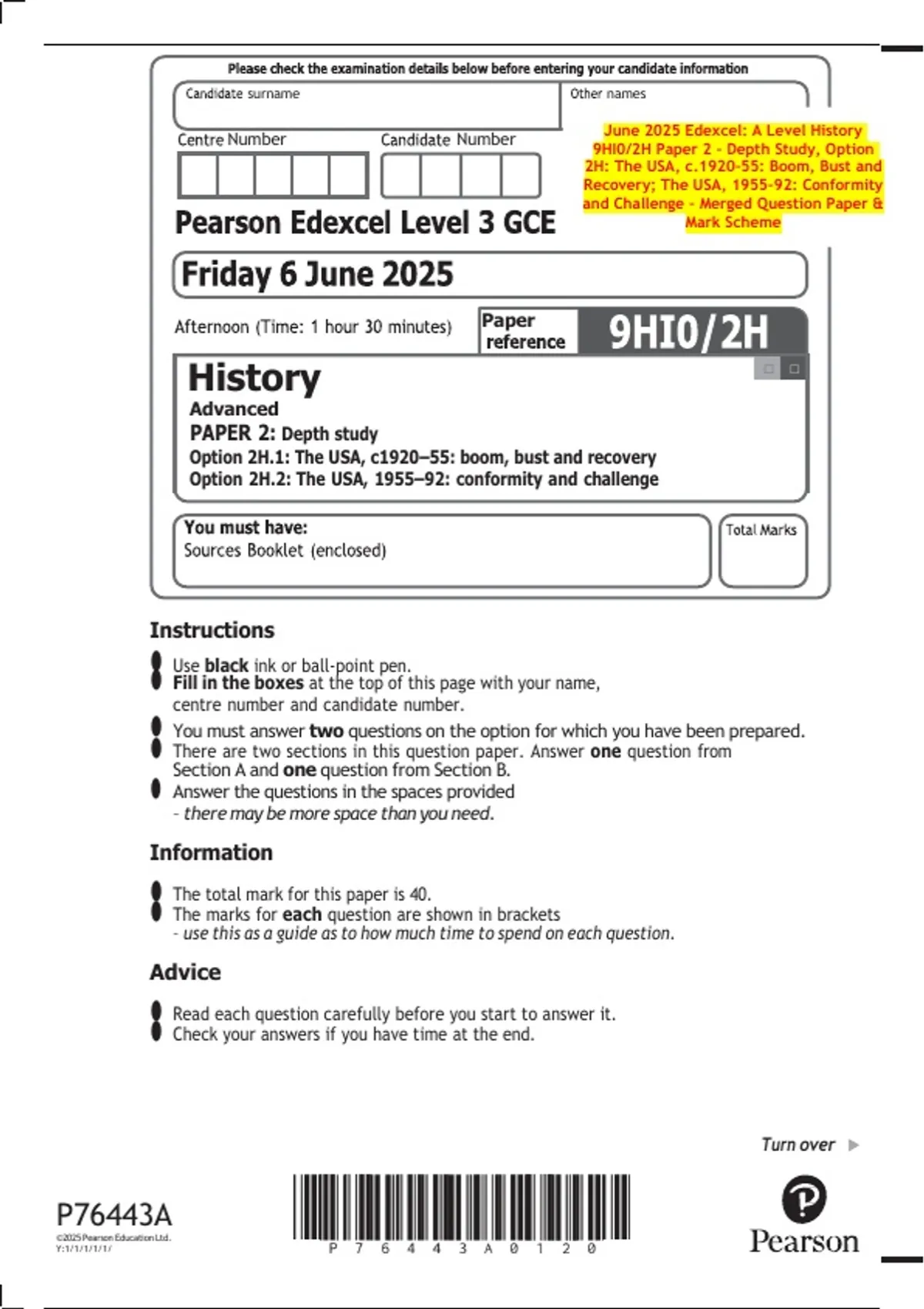 Option 2H.2: The USA, 1955–92: conformity and challenge