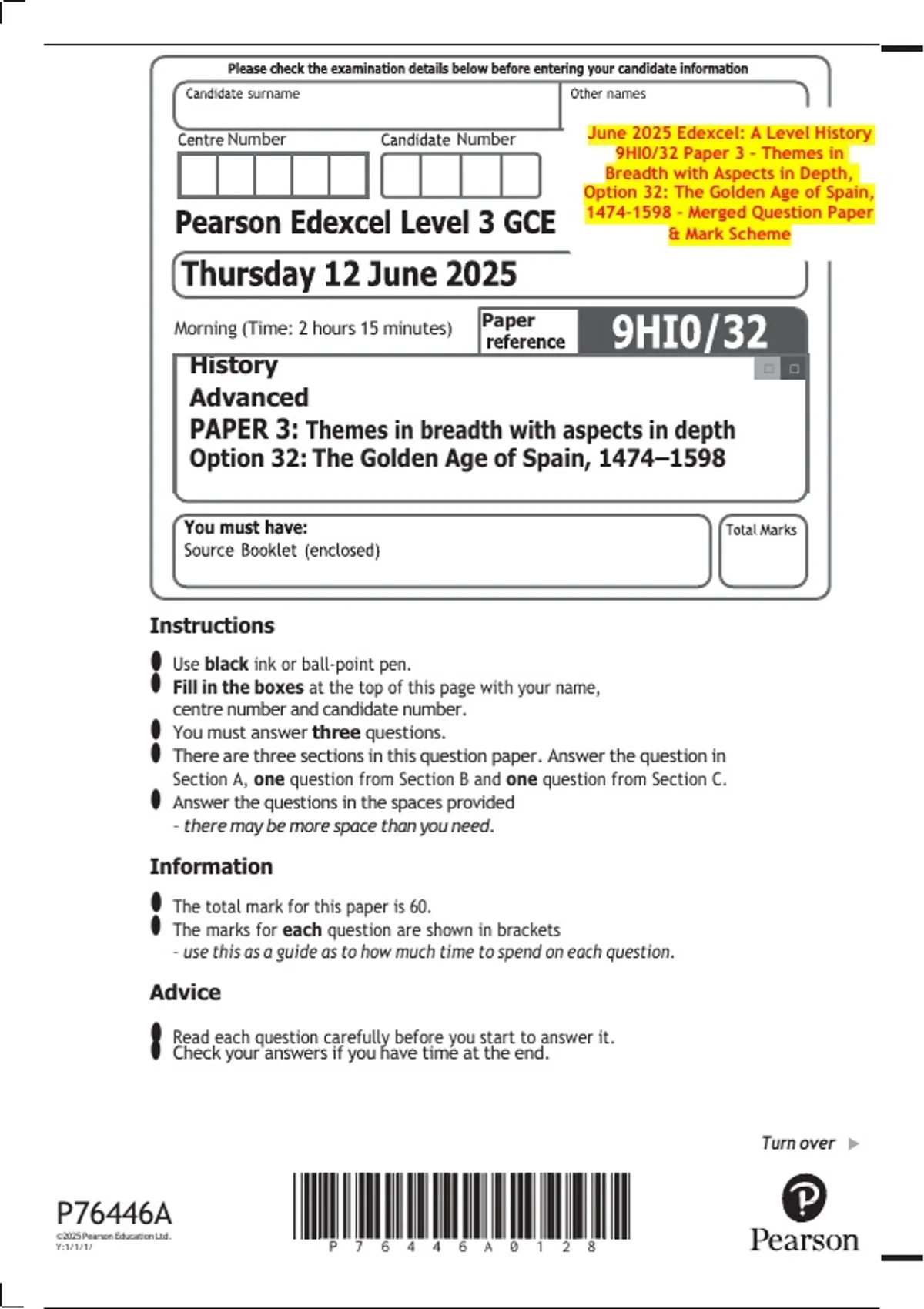 Number Number June 2025 Edexcel: A Level History