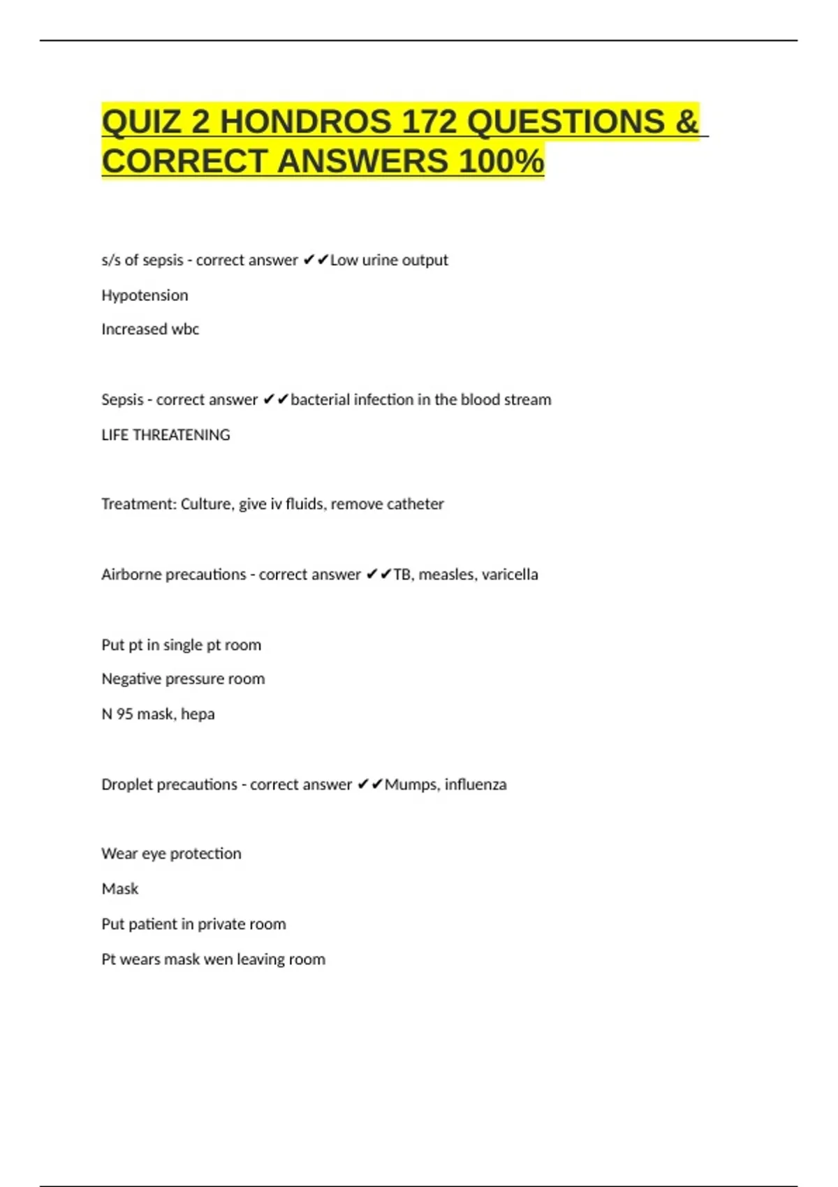 QUIZ 2 HONDROS 172 QUESTIONS & CORRECT ANSWERS 100% a digital study set created to help nursing students at Hondros College of Nursing prepare for exams in the NUR 172 – Health Promotions and Nursing Care of the Adult II course.