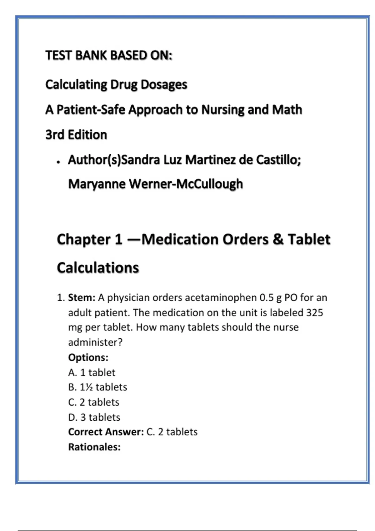 1. Stem: A physician orders acetaminophen 0.5 g PO for an