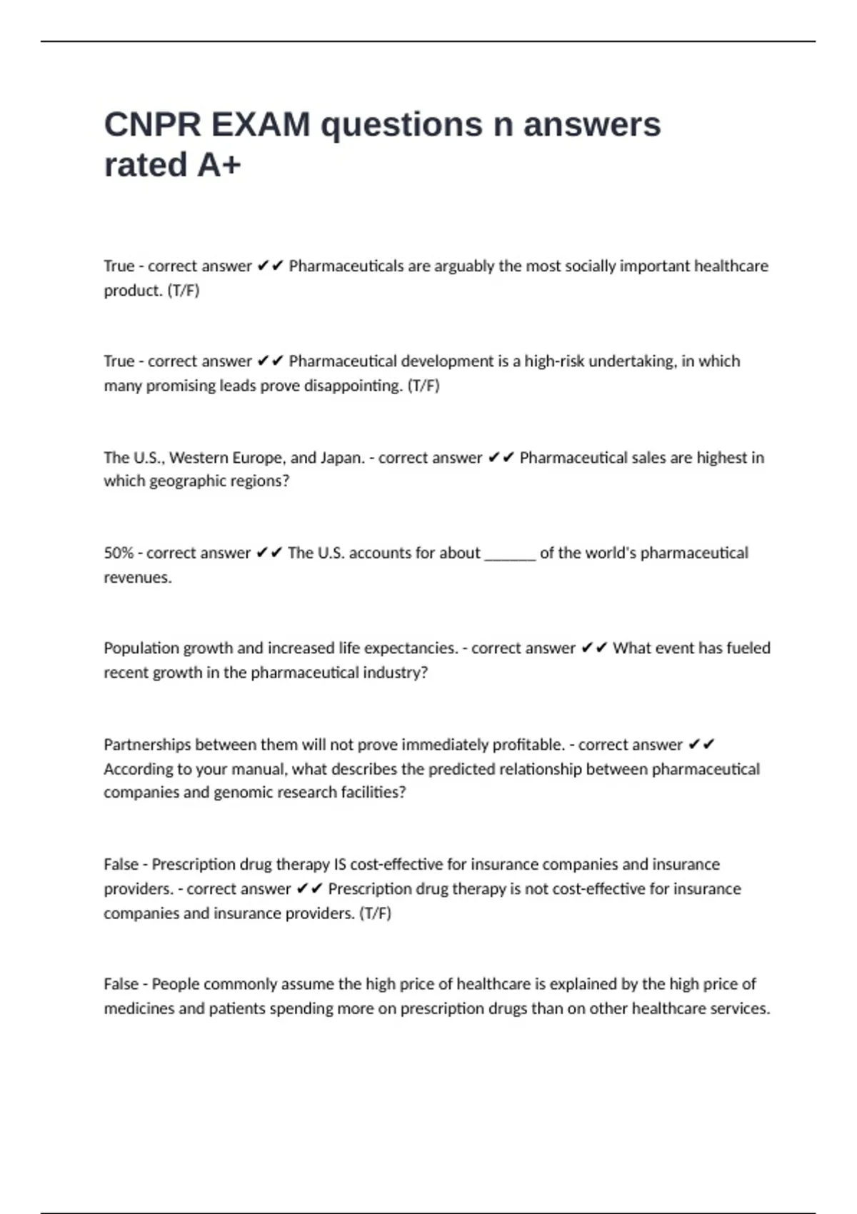 True - correct answer ✔✔ Pharmaceutical development is a high-risk undertaking, in which
