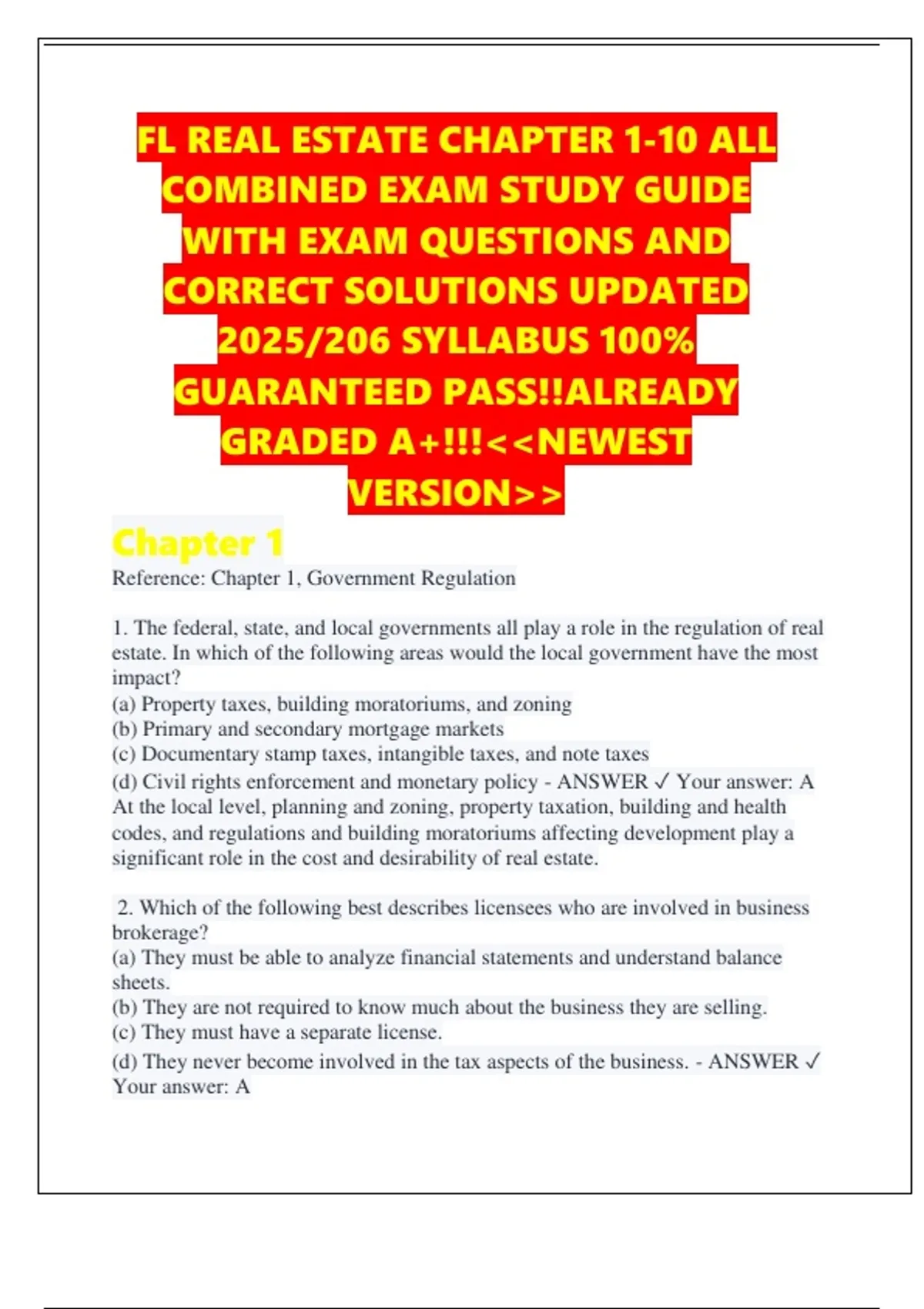 (d) A mortgage loan originator must have a real estate license. - ANSWER ✓ Your