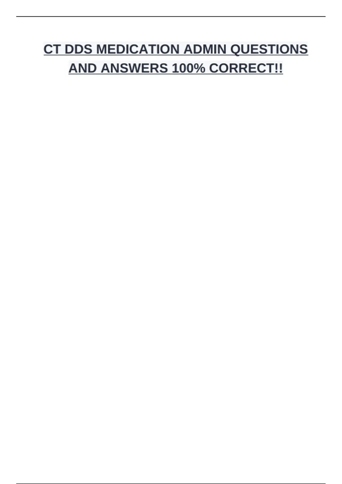 CT DDS MEDICATION ADMIN QUESTIONS AND ANSWERS 100% CORRECT!!